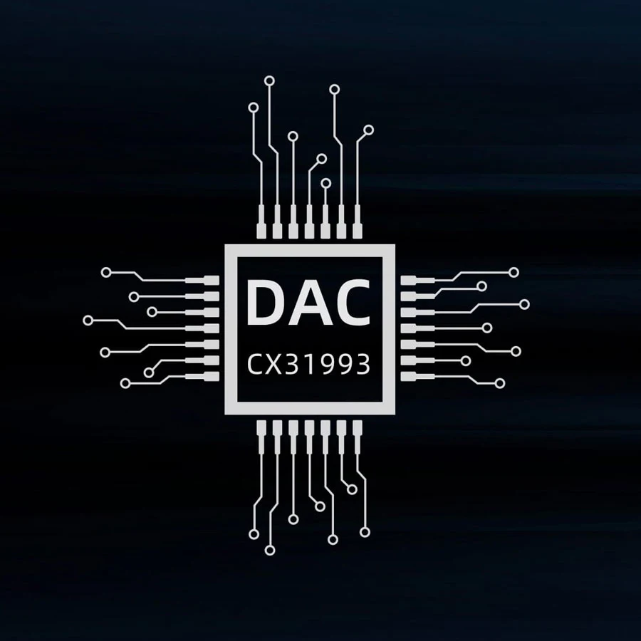 Используя высокопроизводительный независимый чип декодирования DAC American Conexant CX31993, Соотношение сигнал-шум достигает 124 дБ, обеспечивая при этом динамический диапазон до 11 дБ. Поддержка до 32 бит/384 кГц PCM декодирование выход, lossless музыка HiFi удовольствие.