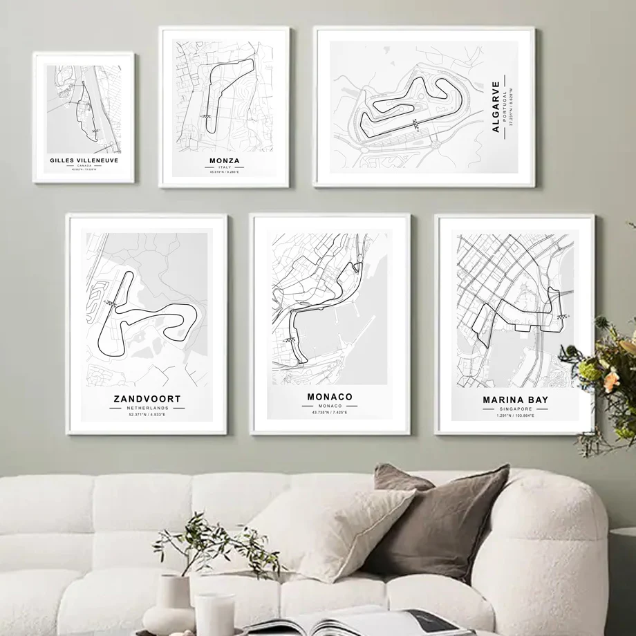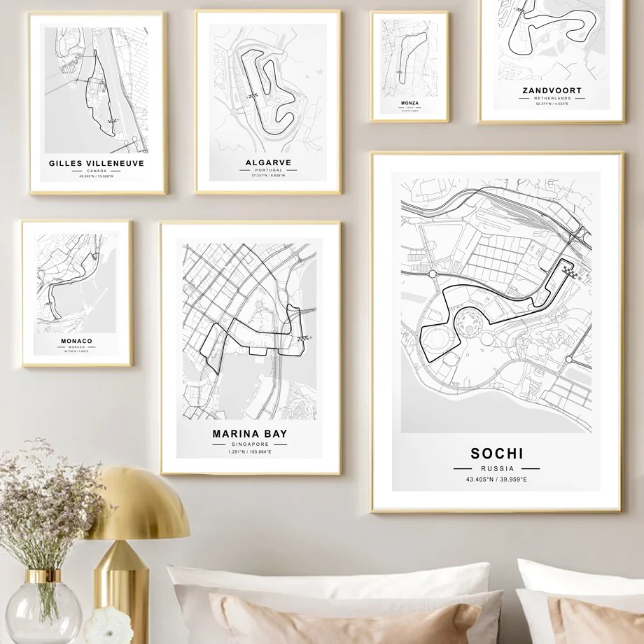 Карта схем Формулы 1, скандинавский плакат, гоночный трек Монако Сочи, настенные художественные принты, Картина на холсте, декоративные картины для гостиной
