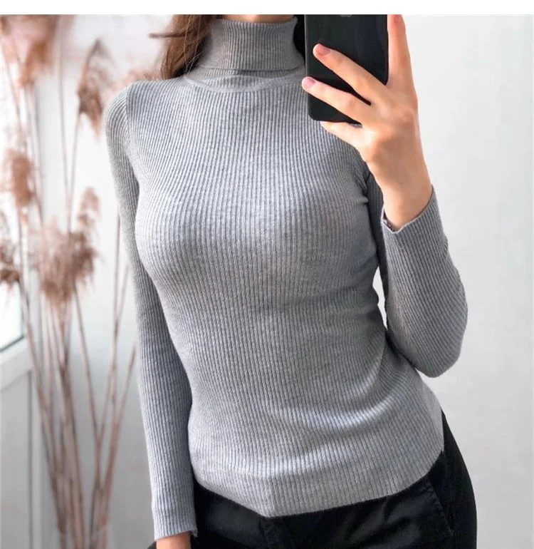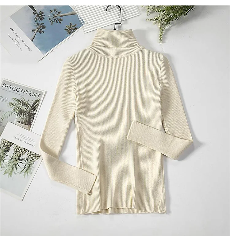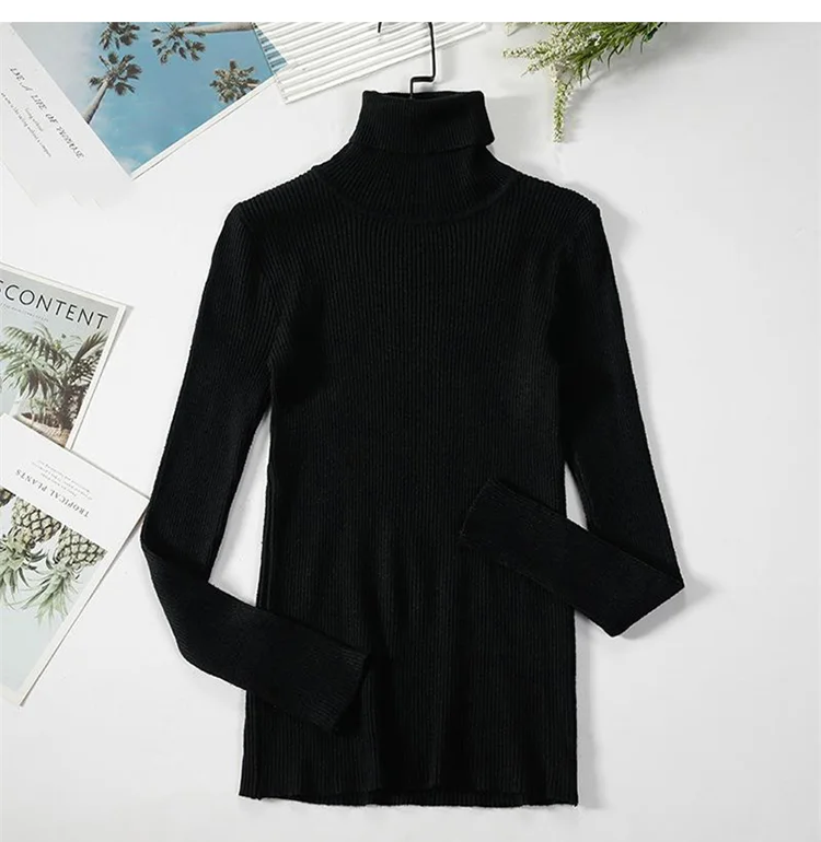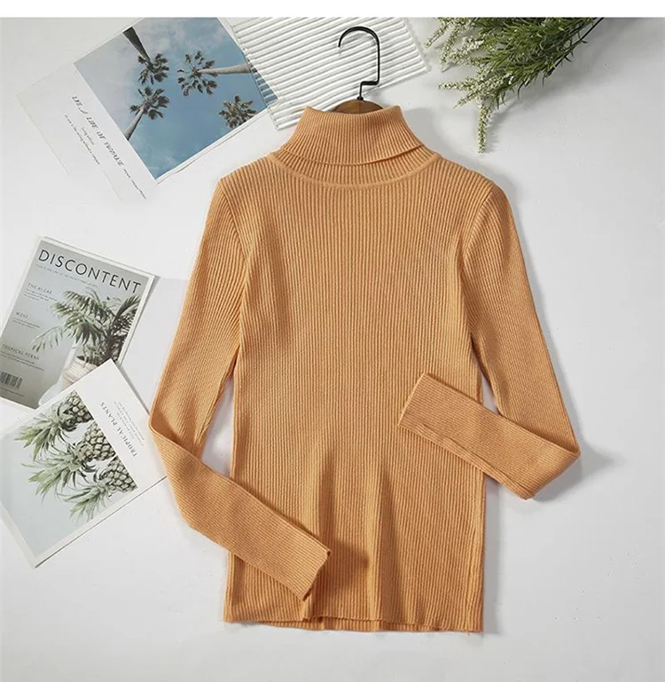 Базовый женский свитер с высоким воротником, сезон осень-зима, плотный теплый пуловер, облегающие топы, вязаный свитер в рубчик, джемпер, мягкий женский пуловер, 2021