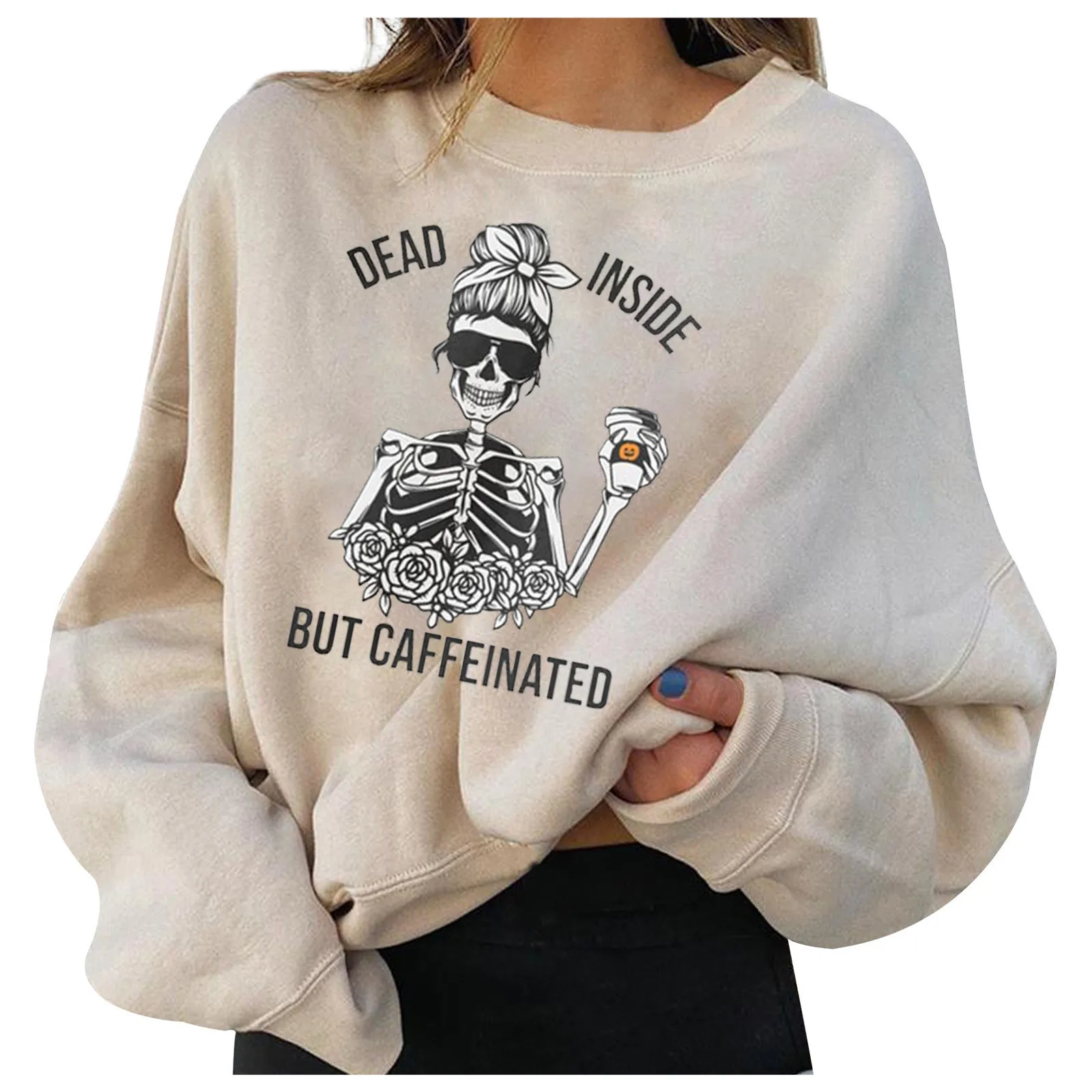Женские толстовки с принтом черепа и тыквы, Забавный Женский пулове...
