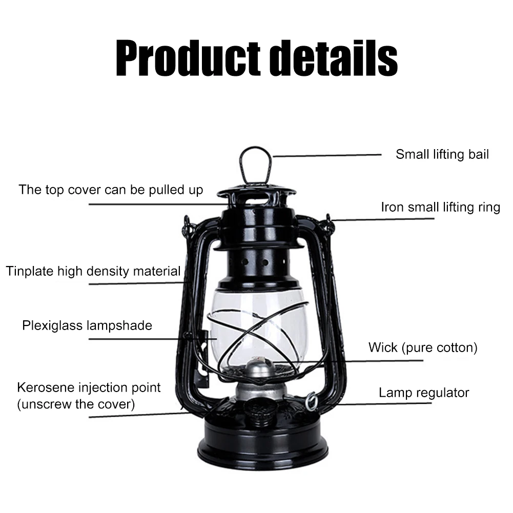 Открытый отдых ретро керосиновые лампы Портативный Ночной светильник винтажный подвесной фонарь лампа для отеля домашнее украшение двораХарактеристика:Большая Емкость масляного горшка, высокая горючесть фитиля.Изысканный внешний вид, герметизация масляной лампы, высокая яркость.Спецификация:Название: керосиновая лампаЦвет: черный, зеленый, синий, красныйМатериал: железо, синтетическое стеклоВес: 230 гРазмеры: 19*9,6*5 см/7,48*3,78 * 1.97inУпаковка: картонная упаковкаВнутренняя упаковка: блистер + поролоновая бумагаТопливо: керосин, дизель, растительное топливо и другое безопасное топливоВремя использования: керосин может использоваться непрерывно в течение нескольких дней после добавления 7 минут.Аксессуары: полностью оборудованный стеклянный абажур, фитиль и т. д.Примечание:Пожалуйста, не используйте бензин, это опасно.В связи с различиями мониторов и эффектами освещения реальный цвет товара может немного отличаться от цвета на фотографиях. Спасибо!Возможны отклонения в 1-2 см вследствие измерений вручную.