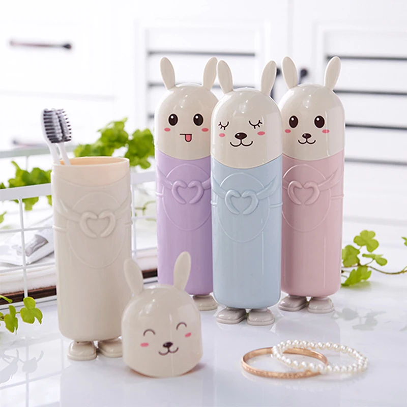 Милая портативная зубная щетка с кроликом, зубная паста, коробка для зубной щетки, защитная коробка для путешествий, кемпинга, путешествий, детей и взрослых