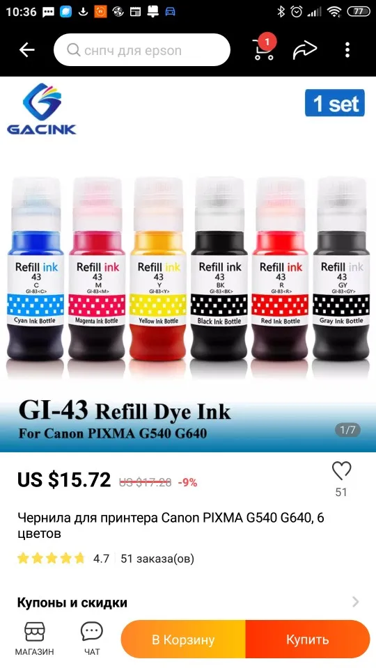 Третье вечерние название бренда: GACINKСовместимый бренд: для CanonНазвание продукта: чернила для заправки красителяОбъем: 70 млЦвет: черный, голубой, пурпурный, желтый, красный, серыйТип чернил: краситель