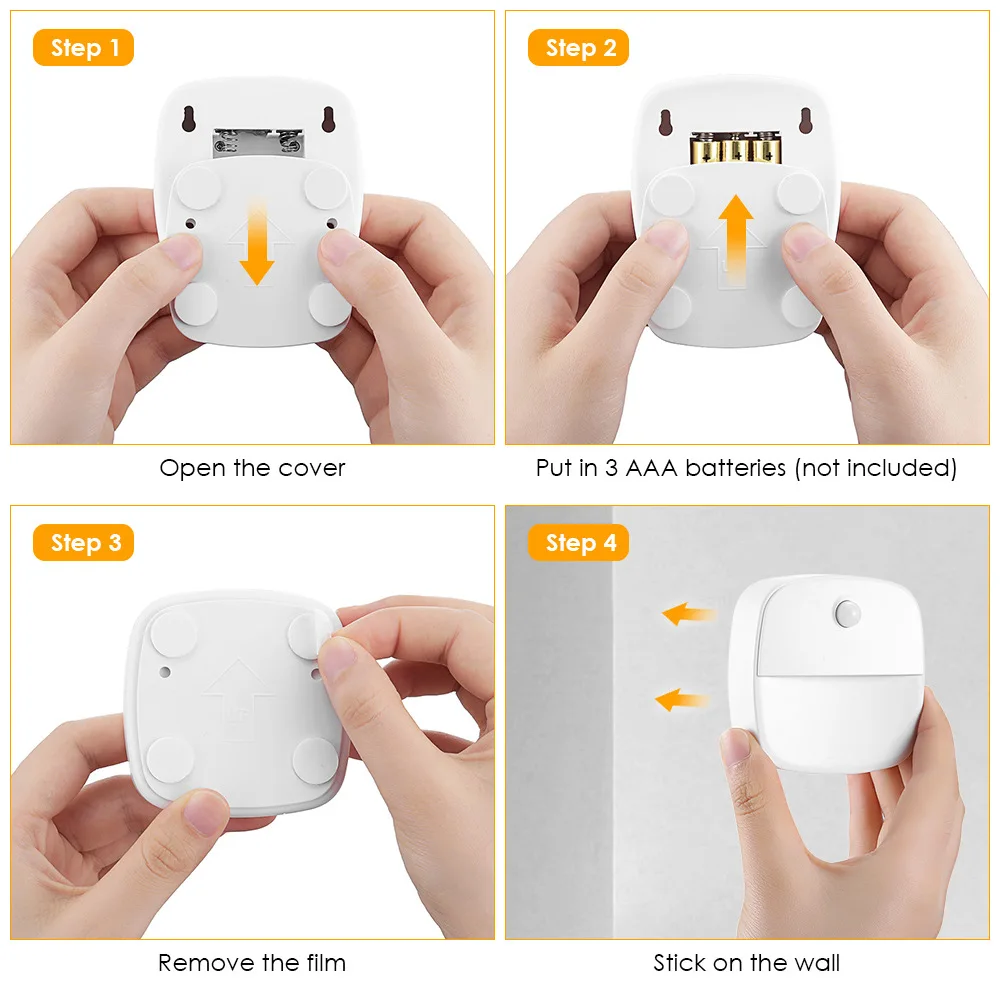 Умный ночник с датчиком движения, светодиодный ночник на батарейках, прикроватная лампа для детской, спальни, коридора, сиденья в туалете