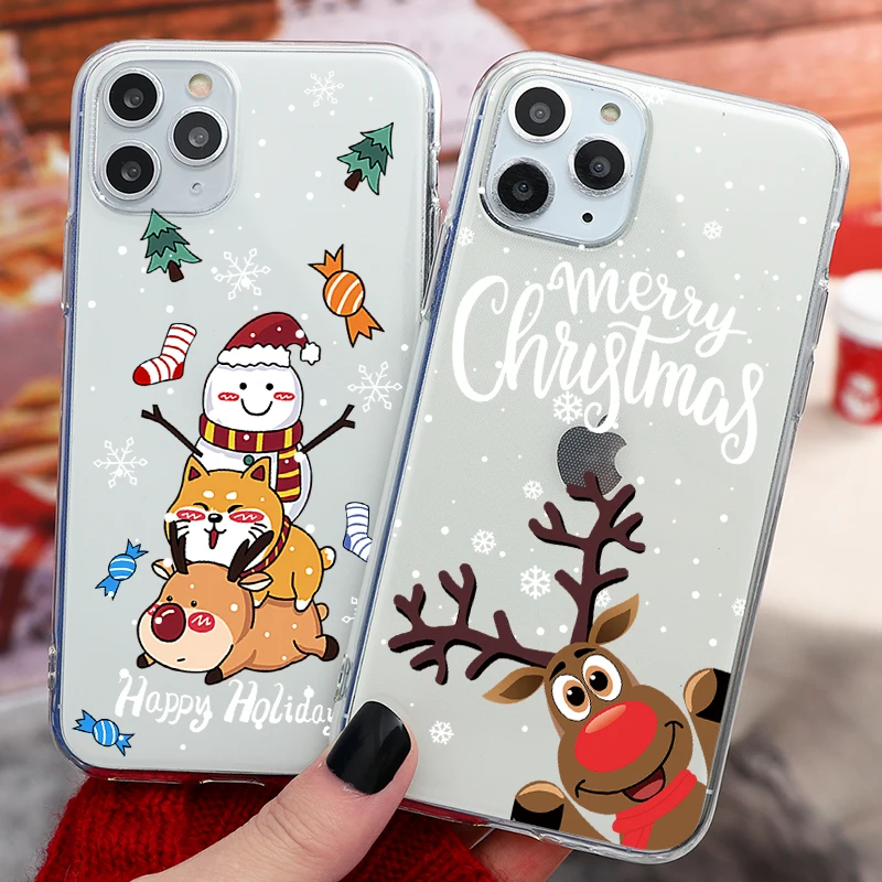 Силиконовый прозрачный чехол для Redmi 9 Prime 9C NFC 9A 9T Note 10 9S 6 7 5 10T 8T 2021 K40 Pro Max Merry Christmas Мультфильм ТПУ чехол