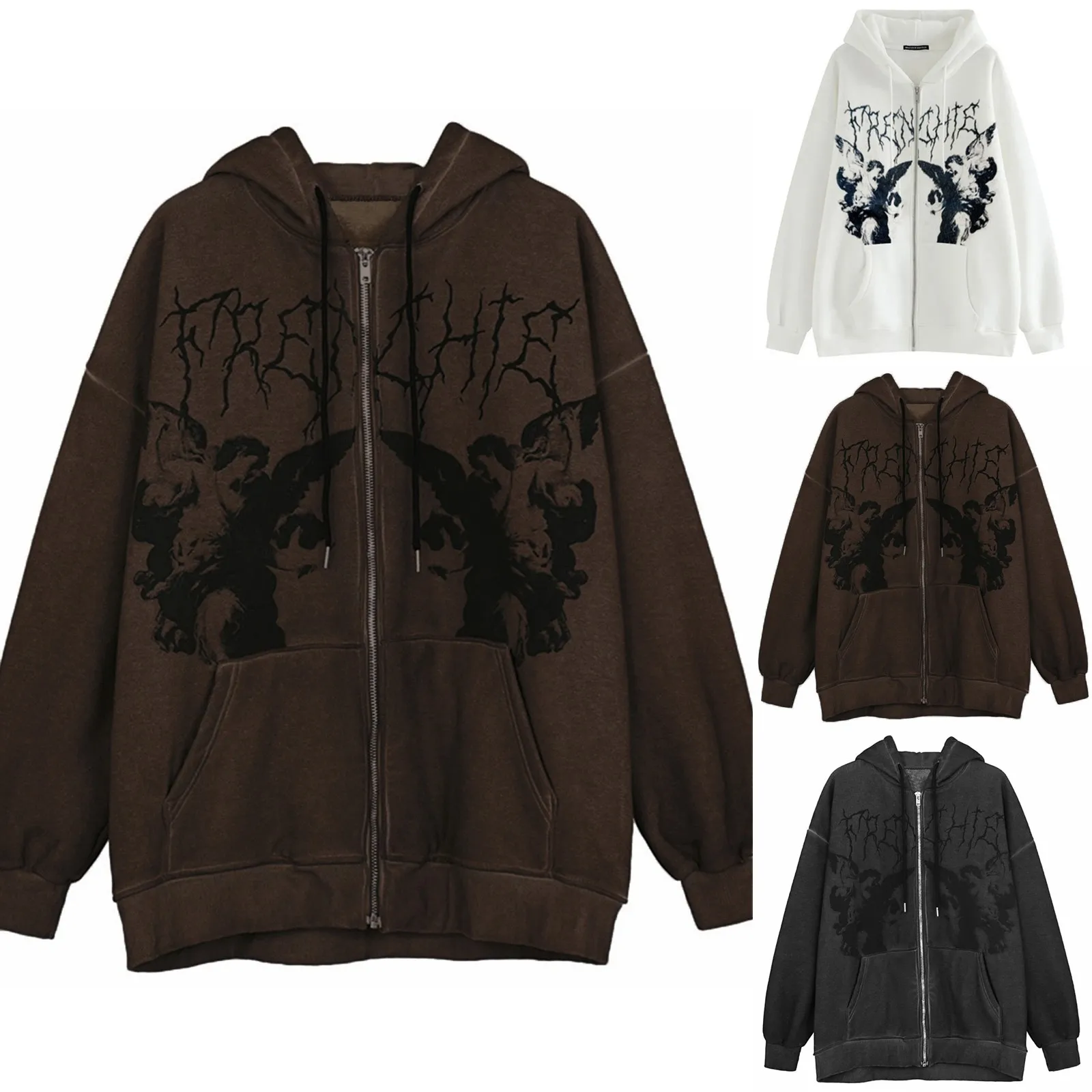 Женская толстовка с капюшоном и принтом ангелов Y2k, куртки для муж...