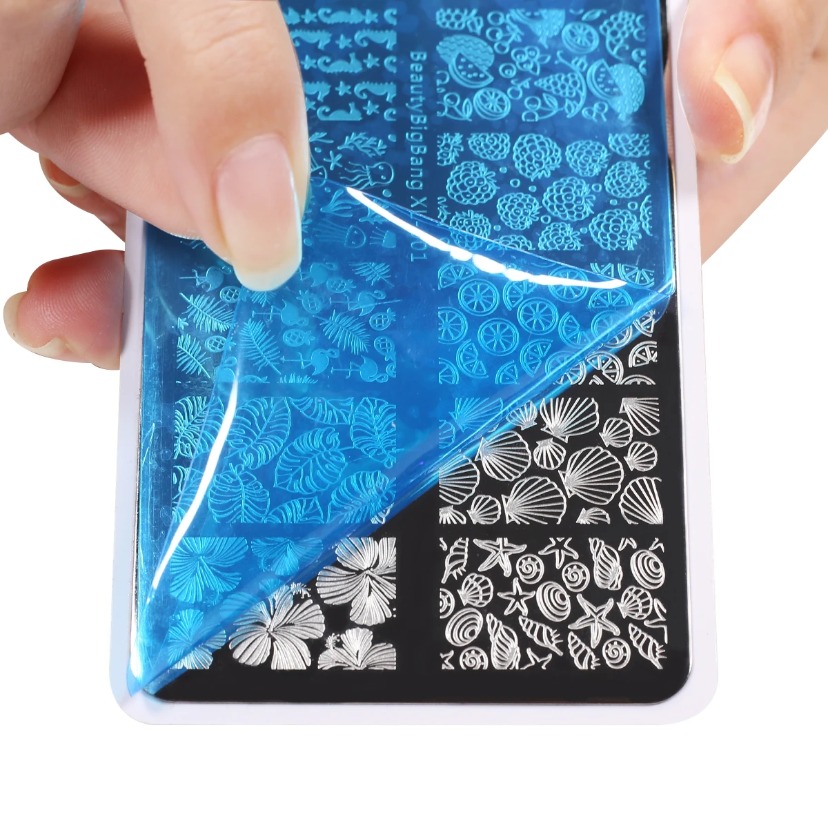 Пластина защищена тонкой прозрачной защитной пленкой, пожалуйста, Снимите пленку перед использованием, чтобы лак для ногтей мог быть передан stamper.