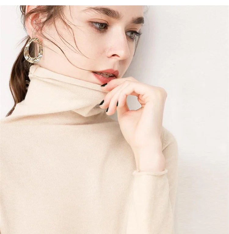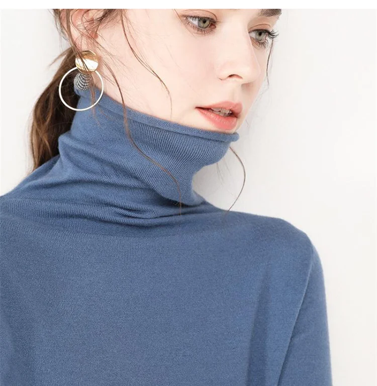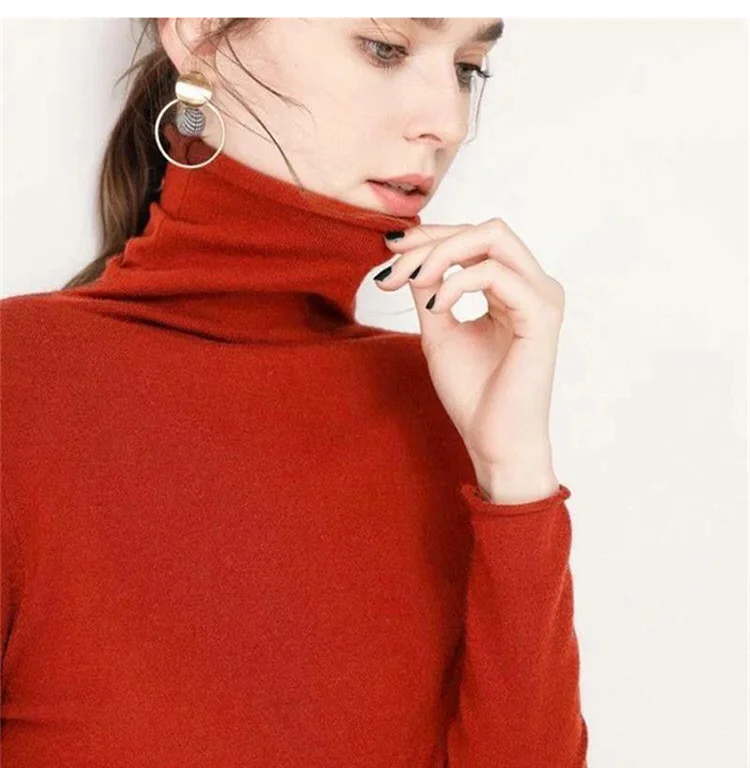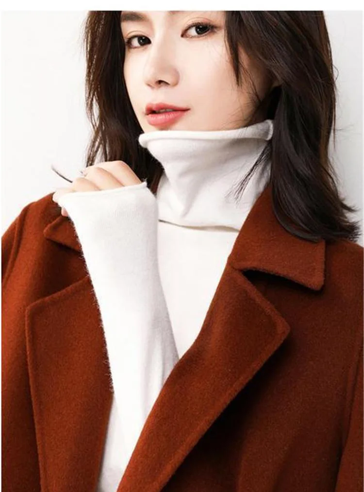 Свитер женский кашемировый, с высоким воротом, однотонный, теплый, ...