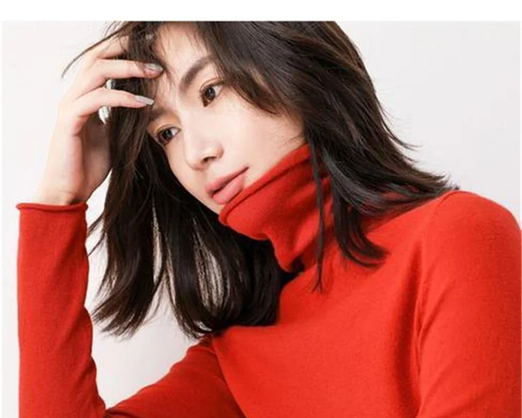 Женские пуловеры, однотонная водолазка, Осень-зима, теплый простой ...