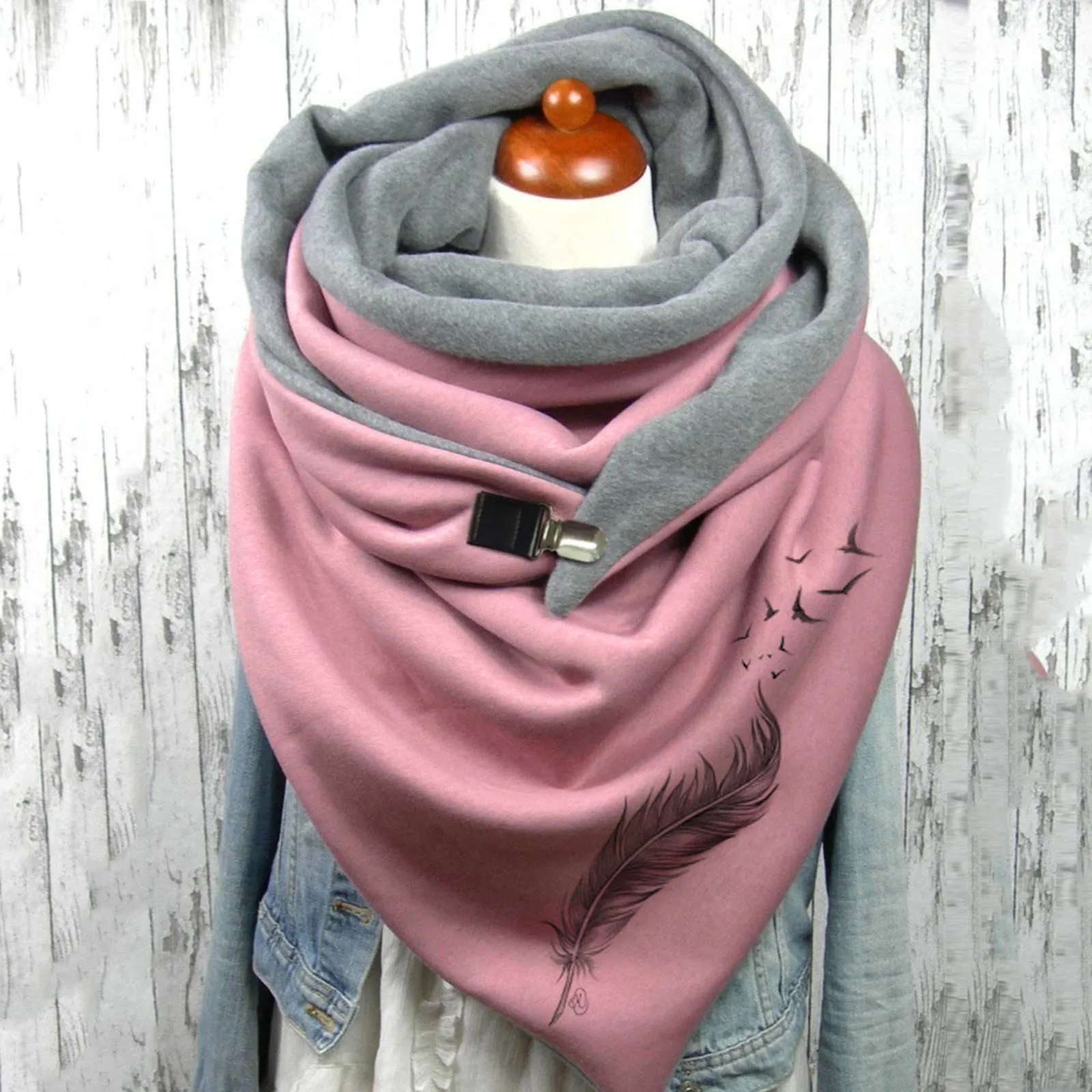 Зимние шарфы для женщин, роскошные однотонные мягкие шарфы на пуговицах с принтом в виде перьев, повседневные теплые шарфы, шали, бандана