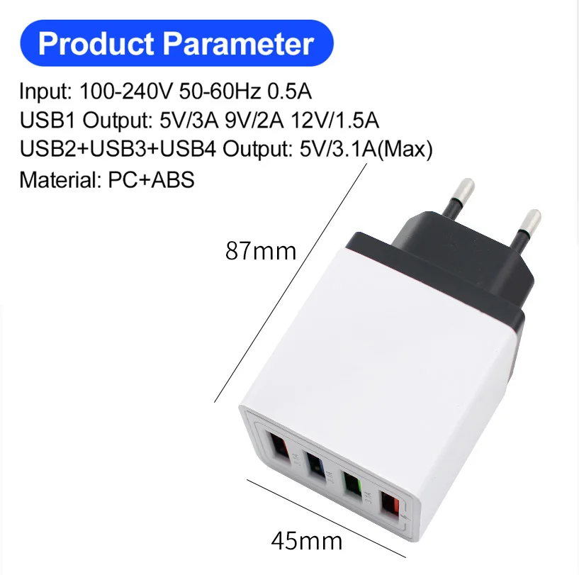 Быстрое зарядное устройство DC 5 В с 4 USB-портами