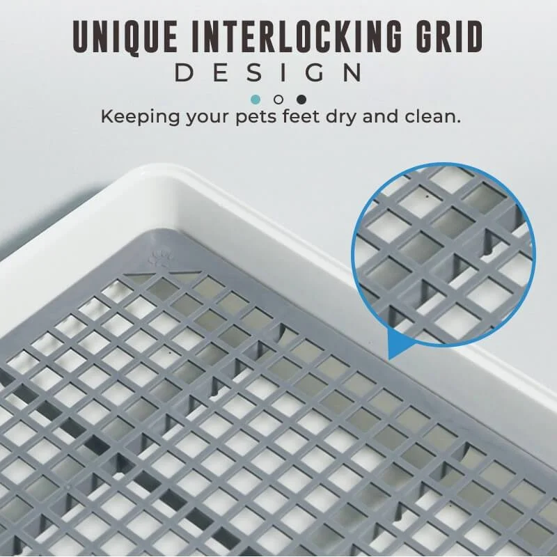 Держите ноги сухимиДизайн сетки позволит моче течь прямо под ногами вашего питомца на тренировочной площадке или газете нижеДержите ноги сухими и чистымиДа. Забудьте о шваброне или влажном вакууме!