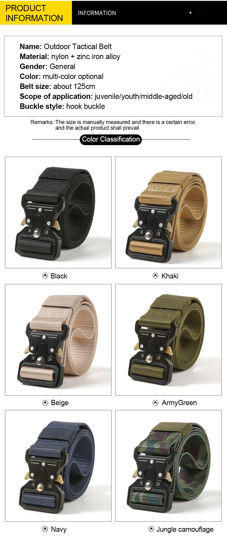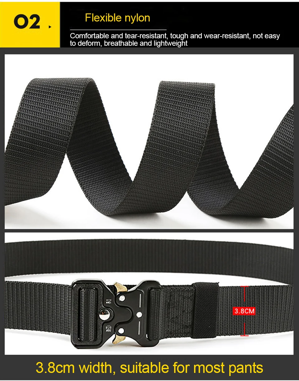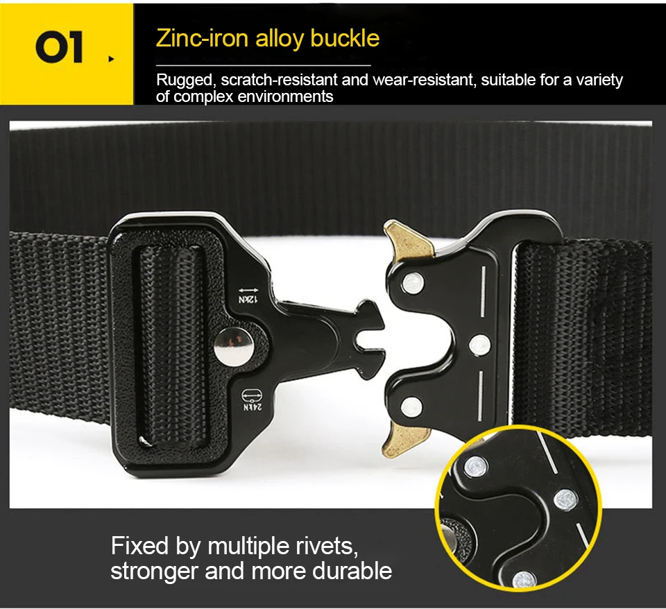 1. Пряжка не может получить обычные петли брюк, пожалуйста, снимите пряжку, прежде чем пройти через нее.2. Это не просто сверхмощный быстросъемный ремень с пряжкой, это модный и прочный, рельефная металлическая пряжка сделает тактический ремень очень модным во всех тактических поясах.3. Тесьма ремня была утолщена, что делает тактический ремень идеальным, чтобы быть поясом CCW.4. Он не будет переворачиваться вертикально, когда вы что-то навешиваете. Хороший пояс в военном стиле.5. Плотная тесьма, лучший подарок для вас!