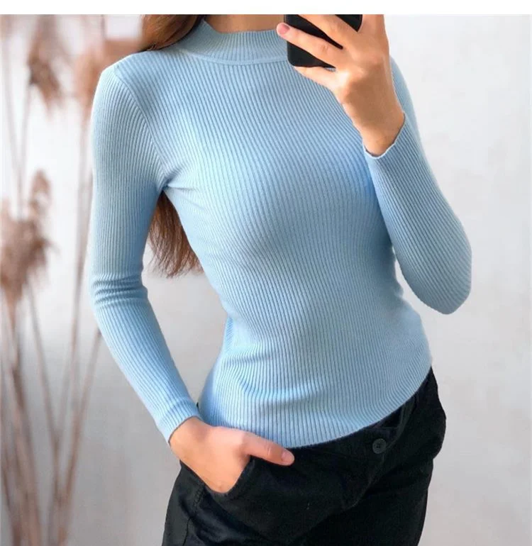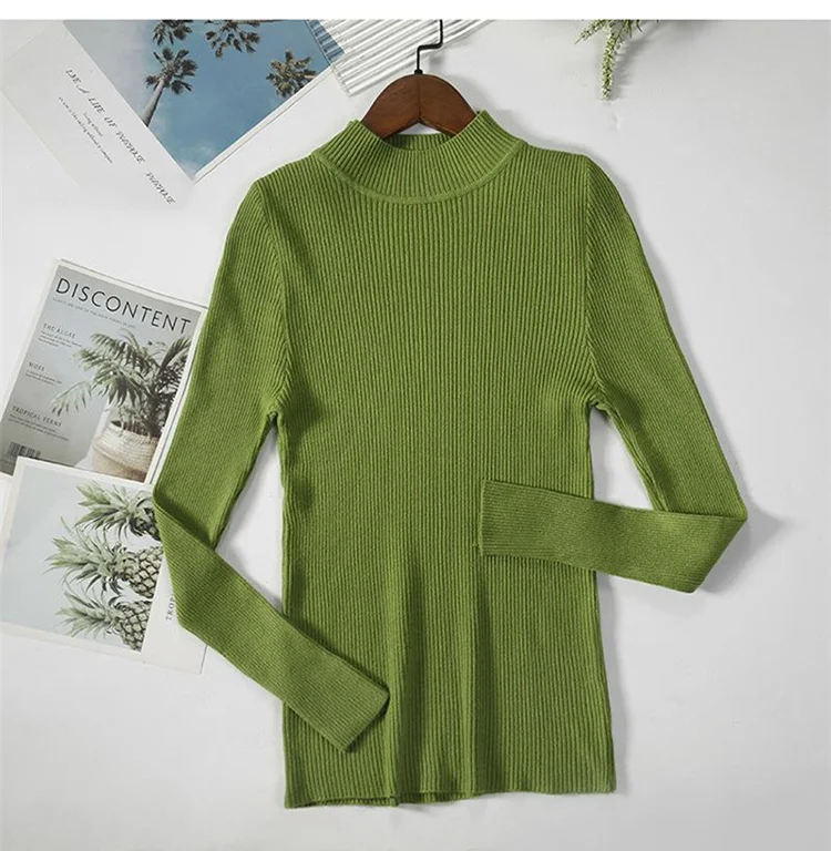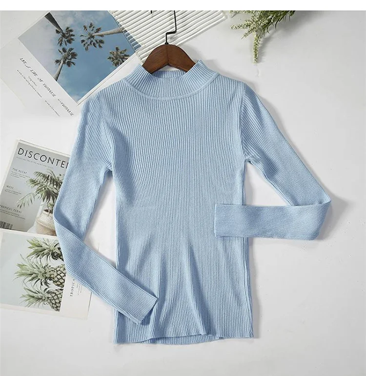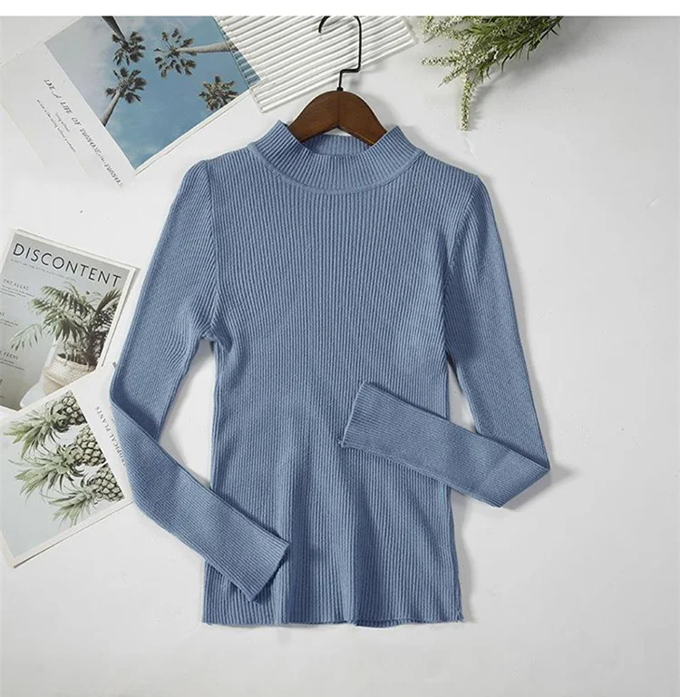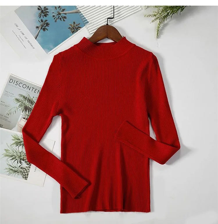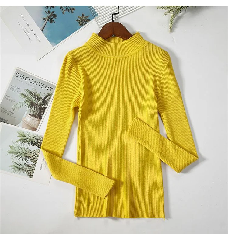 Осенне-зимние базовые вязаные теплые свитера с высоким воротником 2021 женские пуловеры однотонные минималистичные Дешевые топы