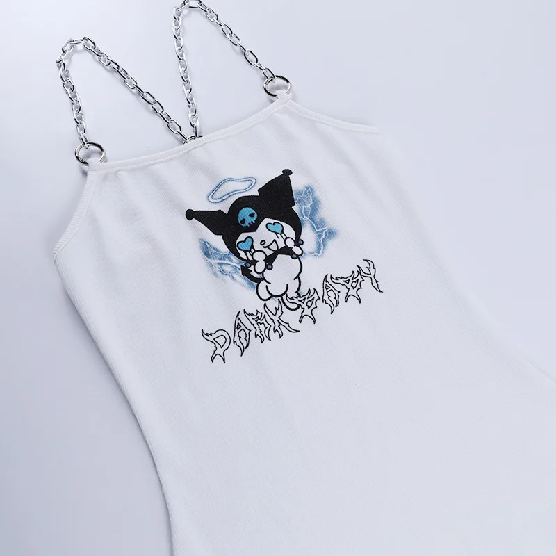 Y2K Готическая Белая кофта с принтом демона, пикантная кофта в стиле панк с металлической цепочкой, уличная одежда в стиле Харадзюку, женское платье на бретельках