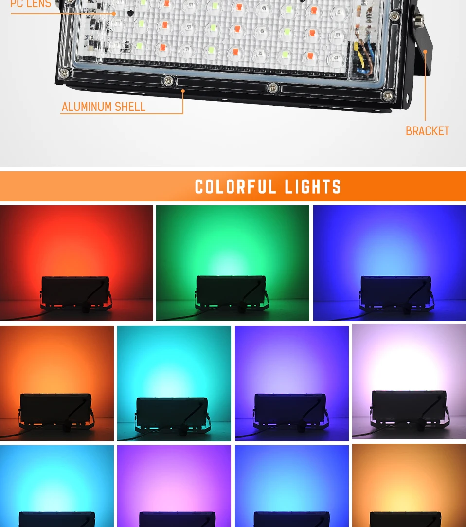 50 Вт светодиодный прожектор, RGB водонепроницаемый точечный светил...