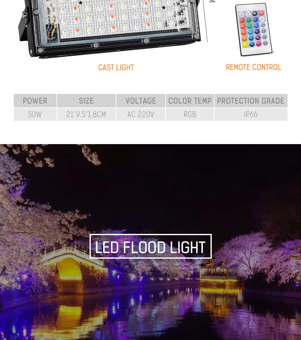 50 Вт Светодиодный прожектор переменного тока 220 В RGB уличный про...