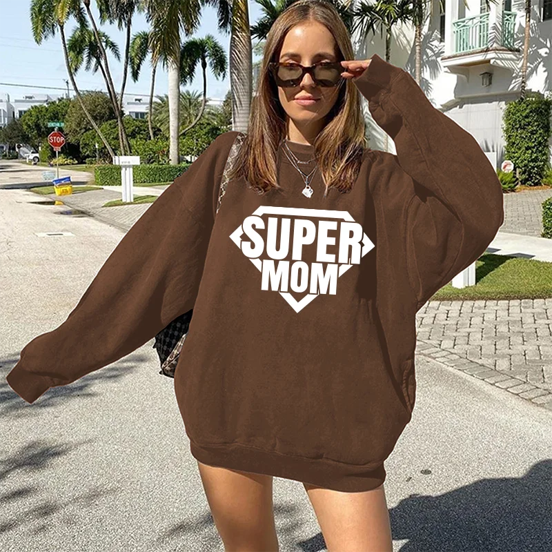 PatternSuper Mom Print Oversized Loose Designer Sweatshirt