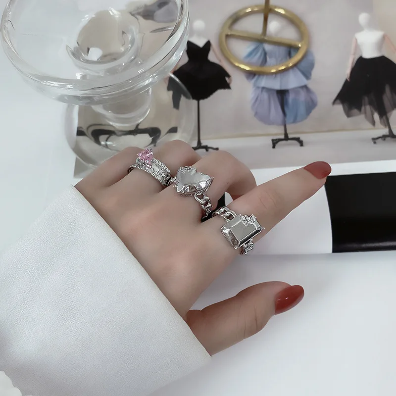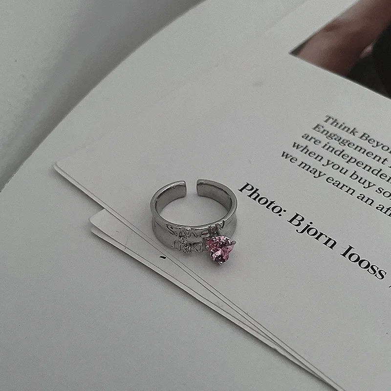 Разбитое металлическое кольцо руин серии, открытые кольца в стиле панк с розовым цирконием и сердцем, тренд 2021 года для женщин, ювелирные изделия Y2K