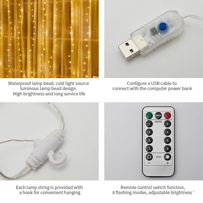 Название продукта: 3*3 метра восемь функций USB занавес светильникХарактеристики продукта: 300l-10cm-серебряный провод-теплый белый светильник 30 светильник s, в общей сложности 10, подключение с прозрачными проводами, расстояние между каждым прозрачным свинцом 30 см, застежка-крючок с пряжкой на соединении, основная полоса соединена с восьмифункциональным голосовым управлением USB, длина свинца-3 метра, пульт голосового управленияВведение функции музыкального голосового управления:1: Вы можете выбрать режим управления звуком музыки, а светильник со звуковым режимом перепрыгивает.2: вы можете выбрать 8 режимов для управления режимом струны светильник.3: Функция синхронизации: 6 часов вкл., 18 часов ВЫКЛ.Введение режима голосового управления с дистанционным управлением:Режим 1: режим голосового управления, действие-режим 2 ~ режим 4 трех циклов, 10 секунд для изменения; После отсутствия звука, 1 секунду, он войдет в s светильник, яркий дыхательный светильникРежим 2: режим голосового управления, действие: левый уличный светильник бьется с музыкой для 1,5 секунд --> двух каналов музыки бьется для 1,5 секунд --> правый канал музыки бьется для 1,5 секунд --> двух каналов музыки бьется для 1,5 секунд --> левый уличный светильник бить музыкальный для 1,5 секунд, И петля, как это; 1 секунду после отсутствия звука, он войдет в s светильник, очень яркий дыхательный светильникРежим 3: режим голосового управления, действие: два канала прослушивания музыки одновременно; 1 секунда после отсутствия звука, он войдет в светильник s, очень яркий дыхательный светильникРежим 4: режим голосового управления, действие: музыка приходит в ритм, левый уличный светильник прыгает один раз, другой удар, правый уличный светильник прыгает один раз; Таким образом, влево и вправо; после отсутствия звука, введите s светильник, ly яркий дыхательный светильникРегулировка яркости-это яркость по умолчанию, регулировка 4 передач, в общей сложности 5 уровней яркости. (Кнопки добавления и вычитания)Все кнопки имеют функцию подсказки. Подсказка мигает один раз, указывая, что эта функция перезапускается.Кнопка 5-12-обычный режим 8. Обычные модели представлены выше. Только кнопка 1234 с музыкальным символом активирована голосом, а кнопка включения по умолчанию активирована голосом 1.Обычные 8 моделей функций и модели голосового управления музыки имеют функцию синхронизации, Функция синхронизации Введение: включение по умолчанию синхронизации 6-18 часов, для включения нажмите и удерживайте кнопку для 1,5 seconds to flash 2 раза, чтобы отменить сроки, следует совершить долгое нажатие на кнопку для 1,5 seconds to мигает 3 раза, чтобы ресинхронизации времени таким образом, в это время Нажатие кнопки функции не влияет на время. Нажатие кнопки таймера на пульте дистанционного управления означает, что подсказка мигает 2 раза, чтобы отменить время, а подсказка мигает 3 раза, означает повторное Переключение времени.