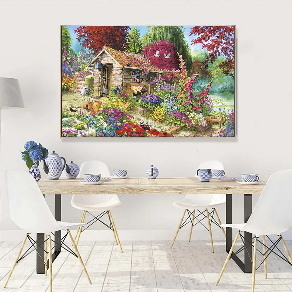Алмазная 5D Вышивка Momoart сделай сам, садовая мозаика, домик, полная выкладка, квадратная живопись, пейзаж, настенное искусство