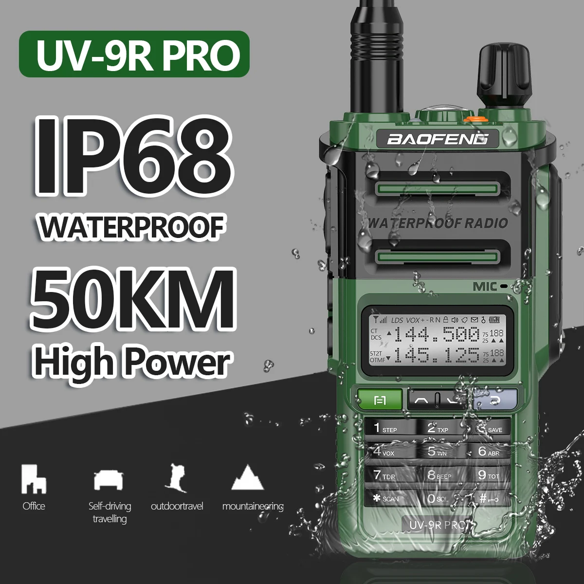 Портативная рация BaoFeng UV-9R Pro, мощная Водонепроницаемая радиостанция CB, Диапазон действия 50 км, Модернизированная UV9R plus Hunt City, IP68