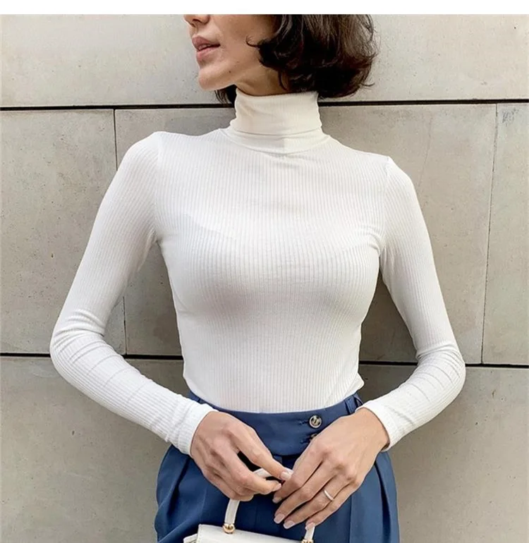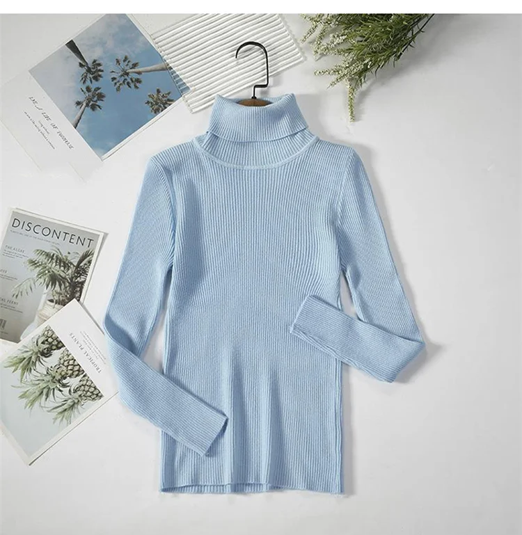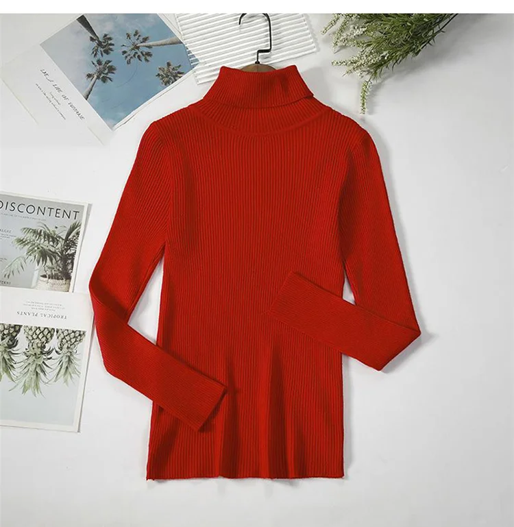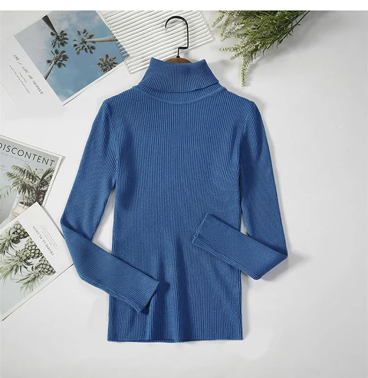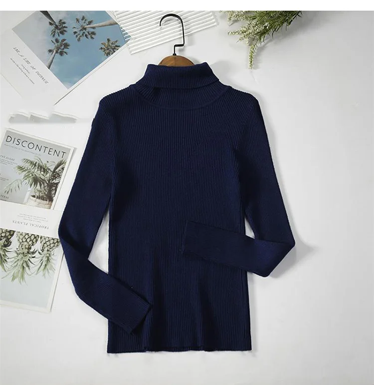 Модный свитер, вязаный женский облегающий теплый свитер, водолазка, вязаный винтажный плотный теплый свитер, Женский Повседневный свитер в рубчик для женщин