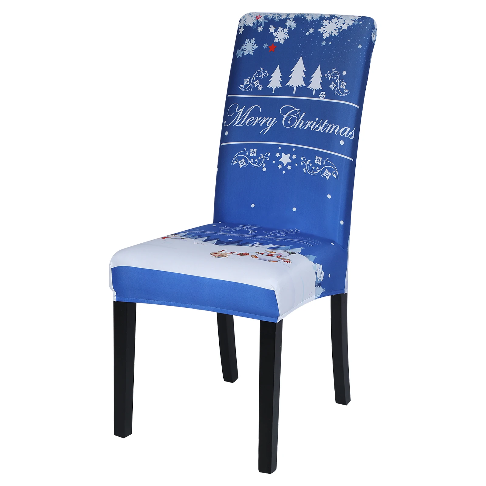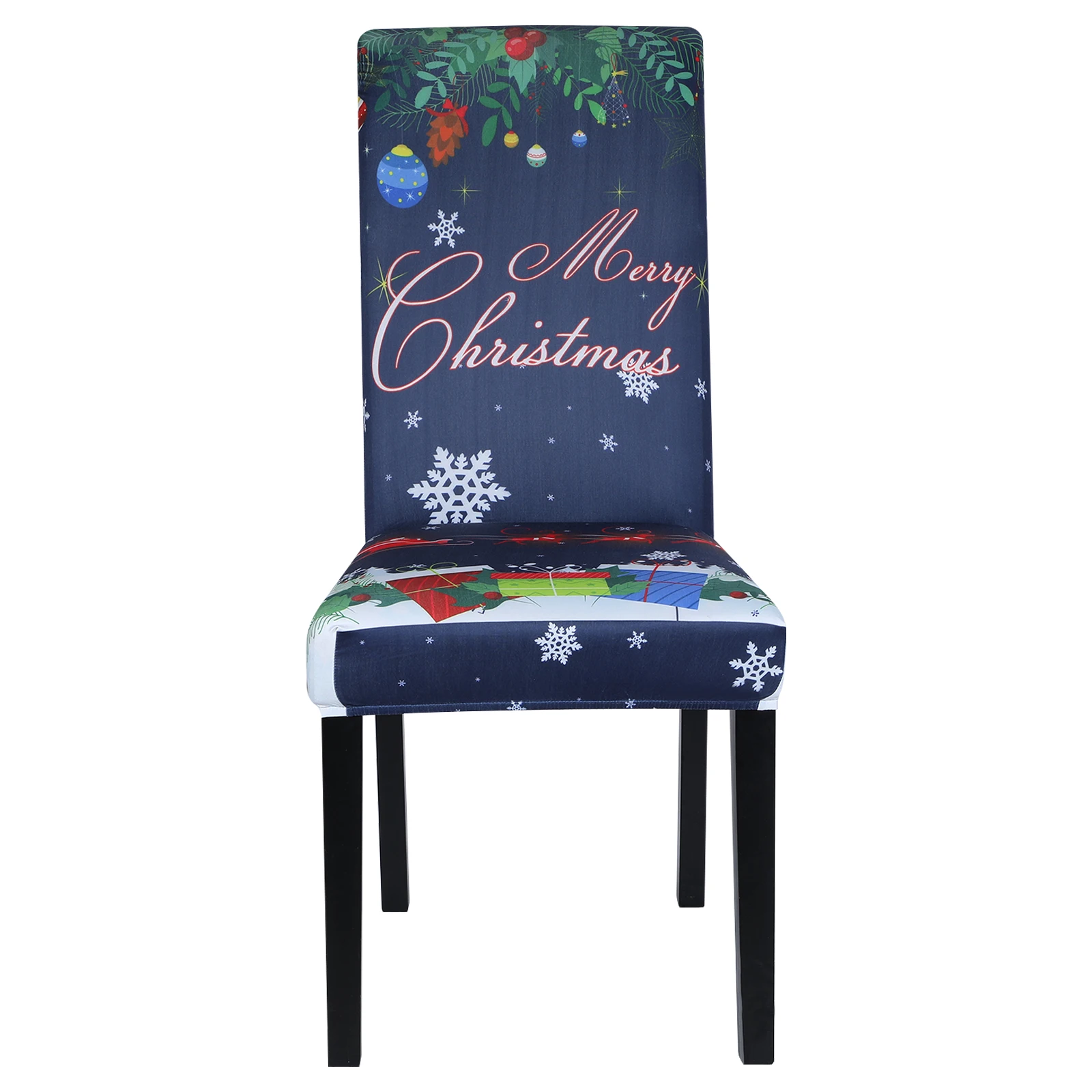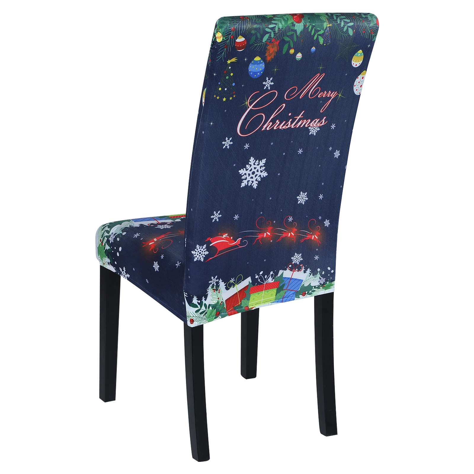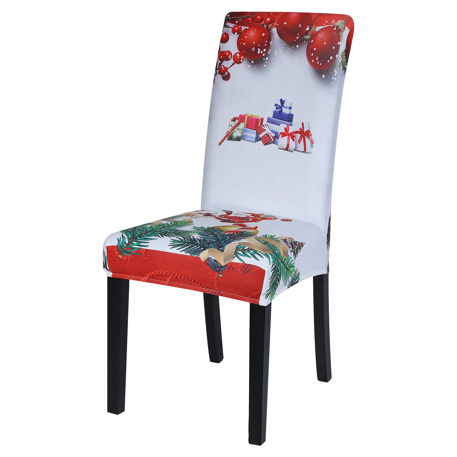 Чехол на стул Рождественский, эластичный чехол из полиэстера для об...