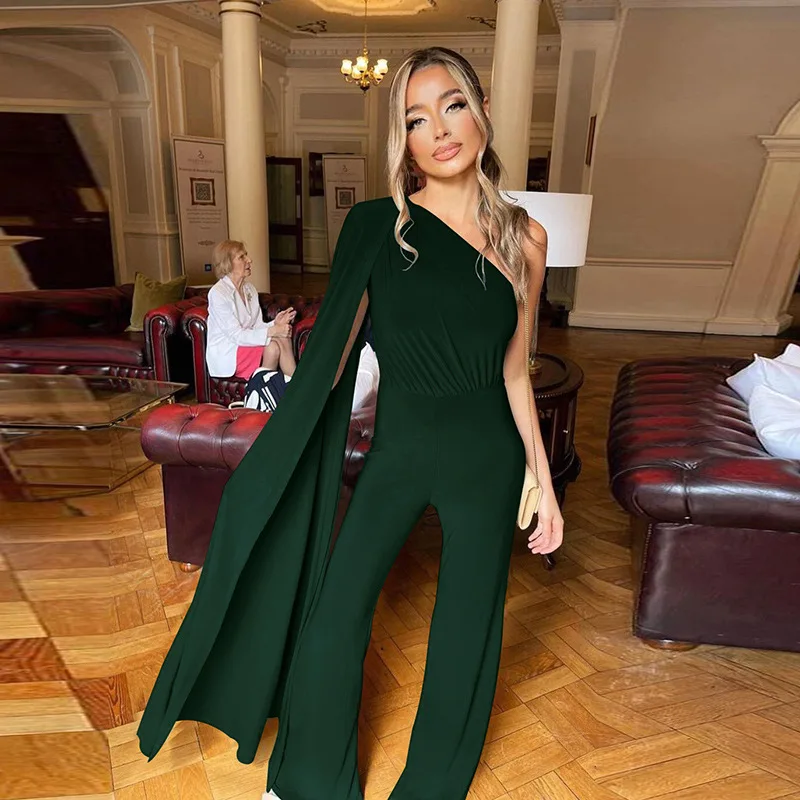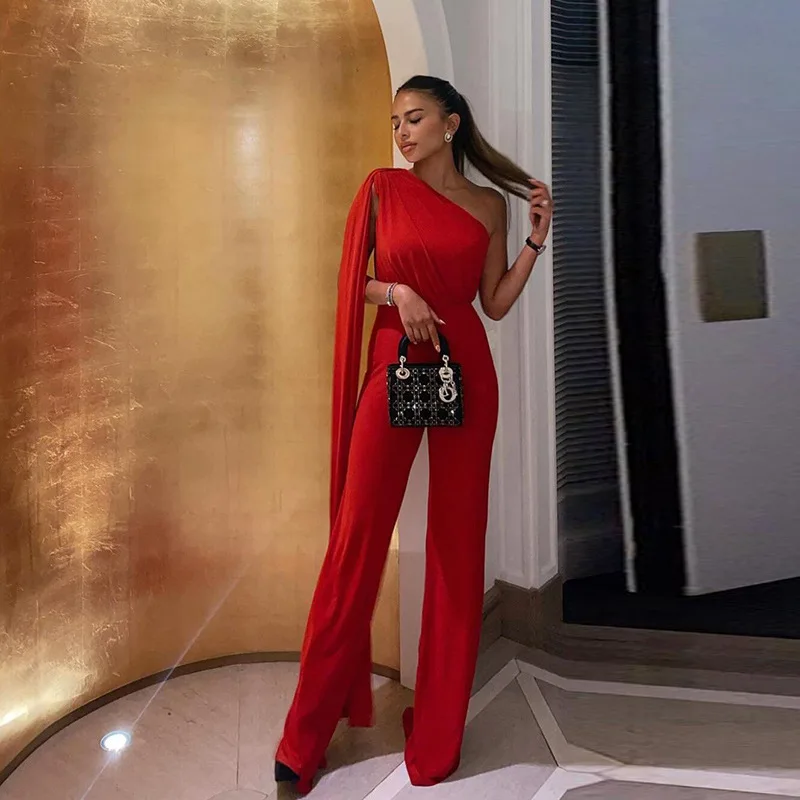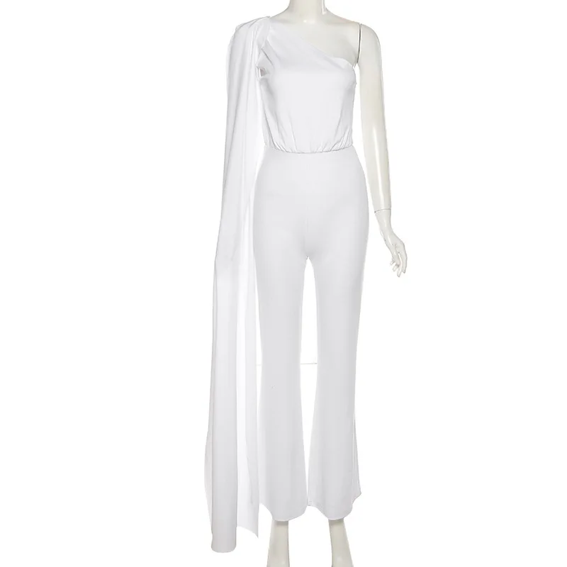 Комбинезон женский с одним открытым плечом, элегантный однотонный п...