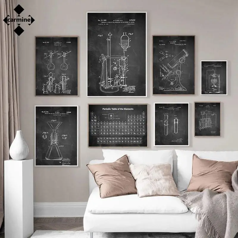 Черно-белый холст, настенный художественный периодический стол элементов, печать картины, научная химическая биология, живопись, медицинская лаборатория, Декор