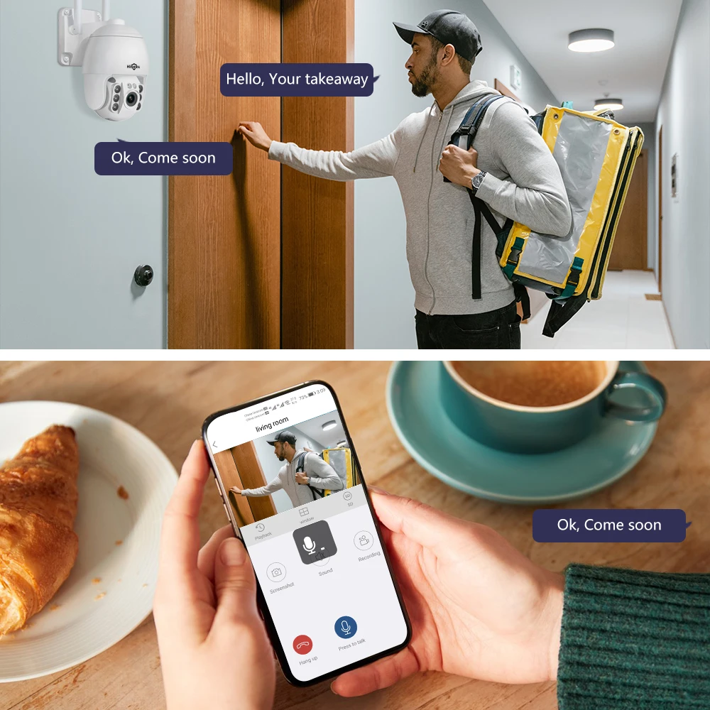Поддержка обнаружения гуманоида и отправить сообщение новости в приложении, вы можете получить уведомление. Если, когда они войдут в ваш дом, получите сигнал тревоги, вы можете перейти в приложение, чтобы поговорить, они будут бояться