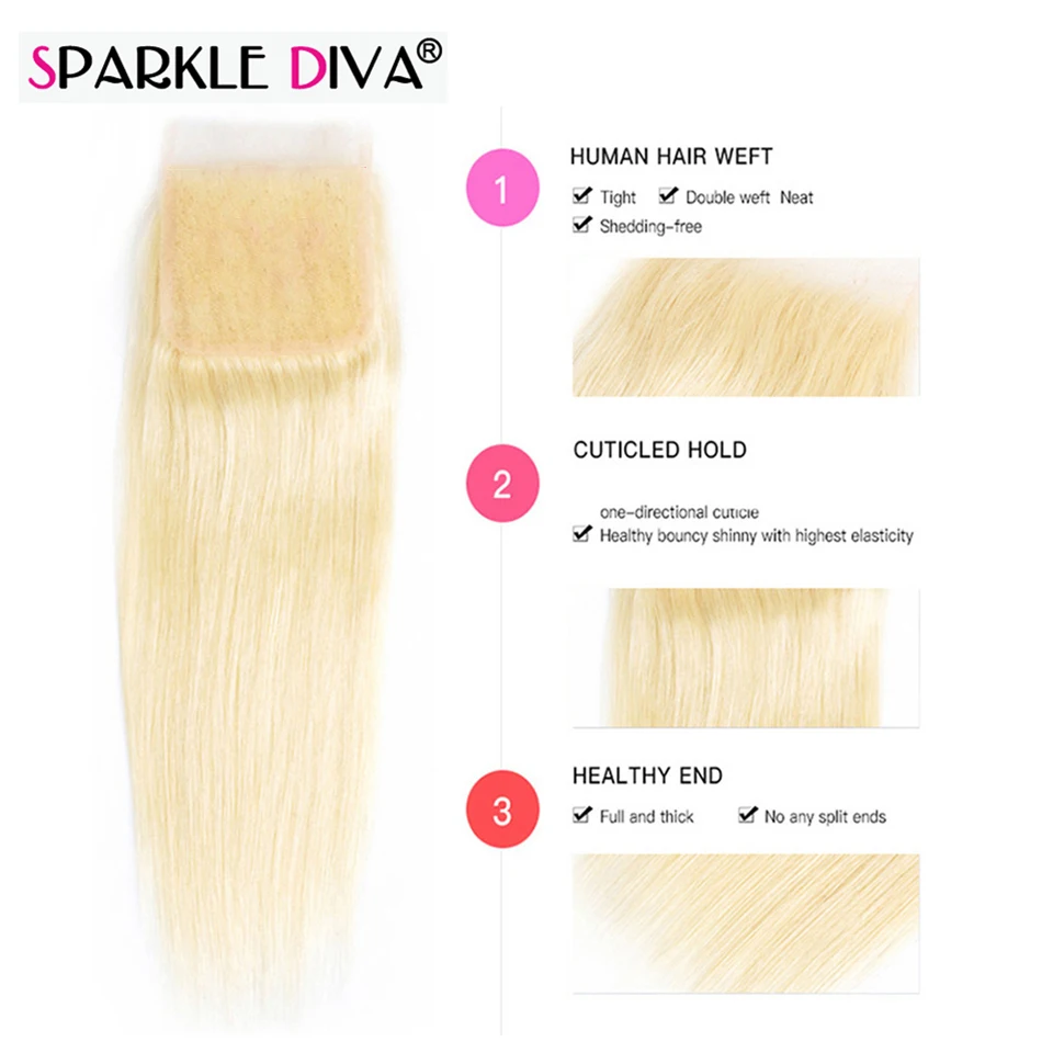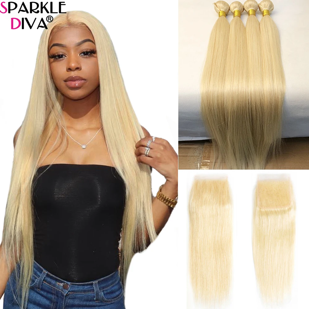 613 светлые пучки с застежкой 5x5, бразильские Прямые быстросохнущие пучки 8-30 дюймов, 613 пряди с застежкой, волосы без повреждений