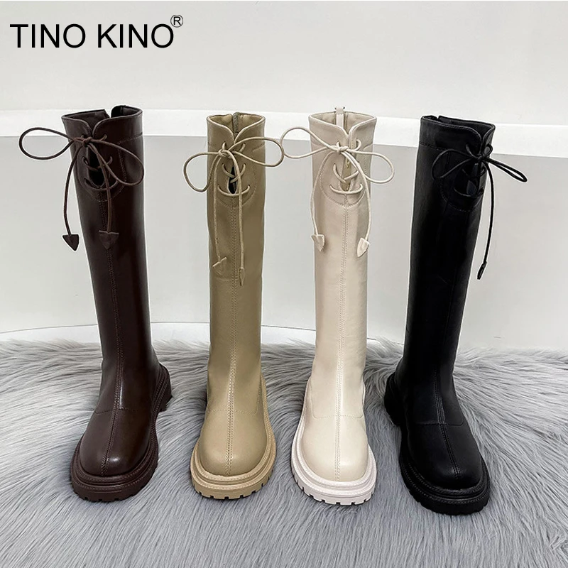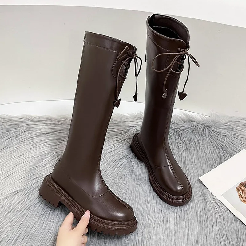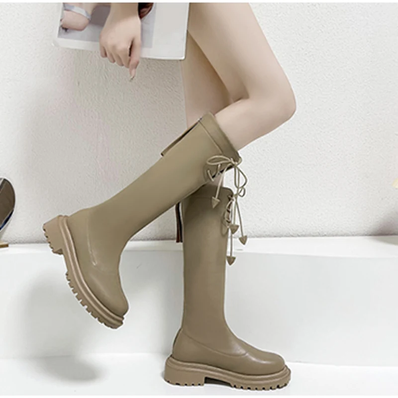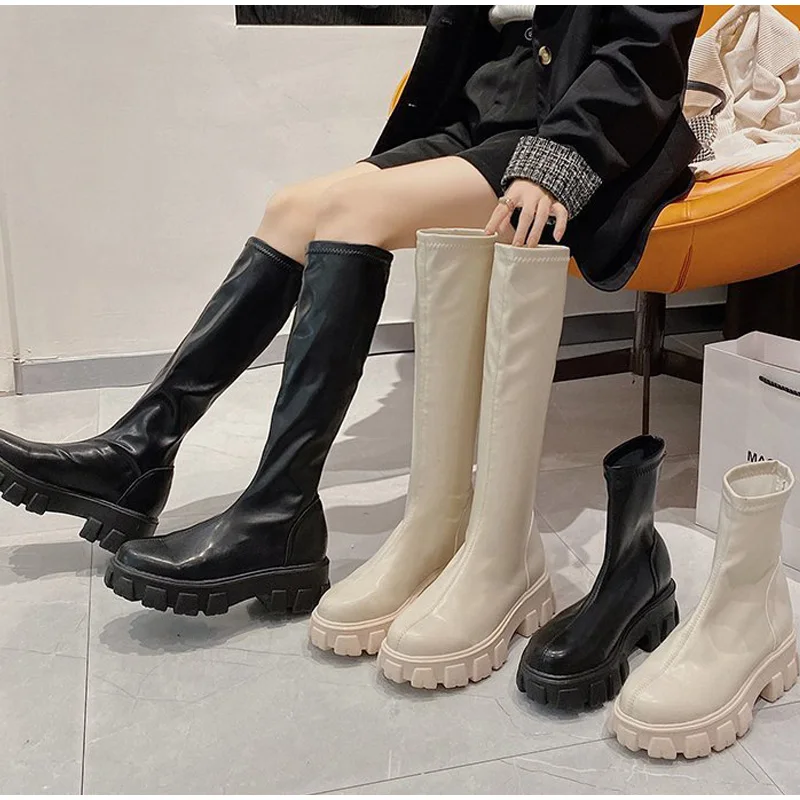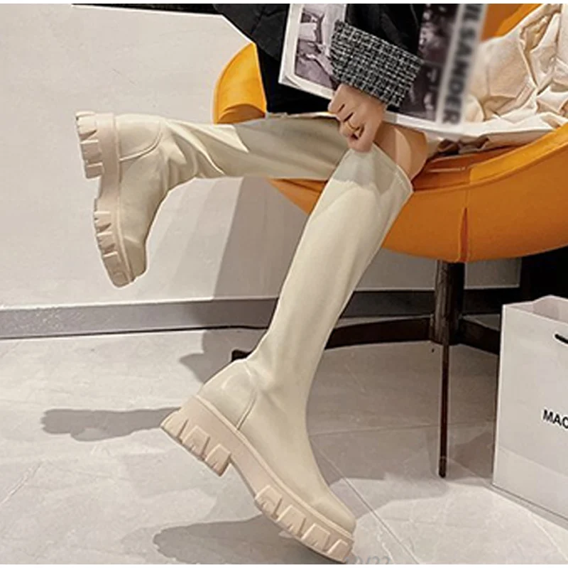 Женские высокие сапоги, нескользящая Осенняя обувь, облегающие сапоги до колена на толстой подошве, обувь на платформе, зимние женские длинные мотоциклетные сапоги 2021