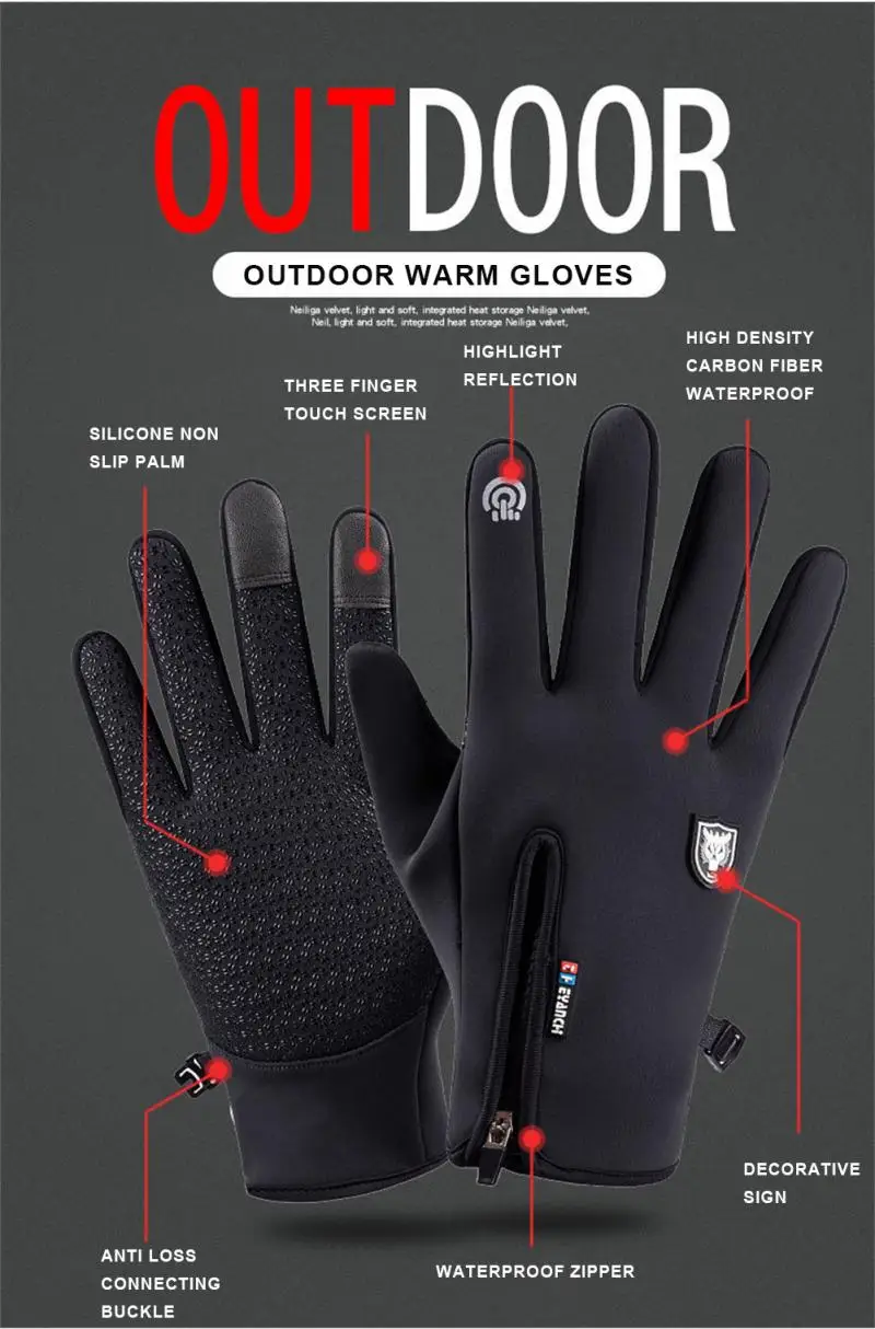 Зимние теплые флисовые лыжные велосипедные перчатки для мужчин и женщин Q908 ветрозащитные водонепроницаемые спортивные перчатки с сенсорным экраном