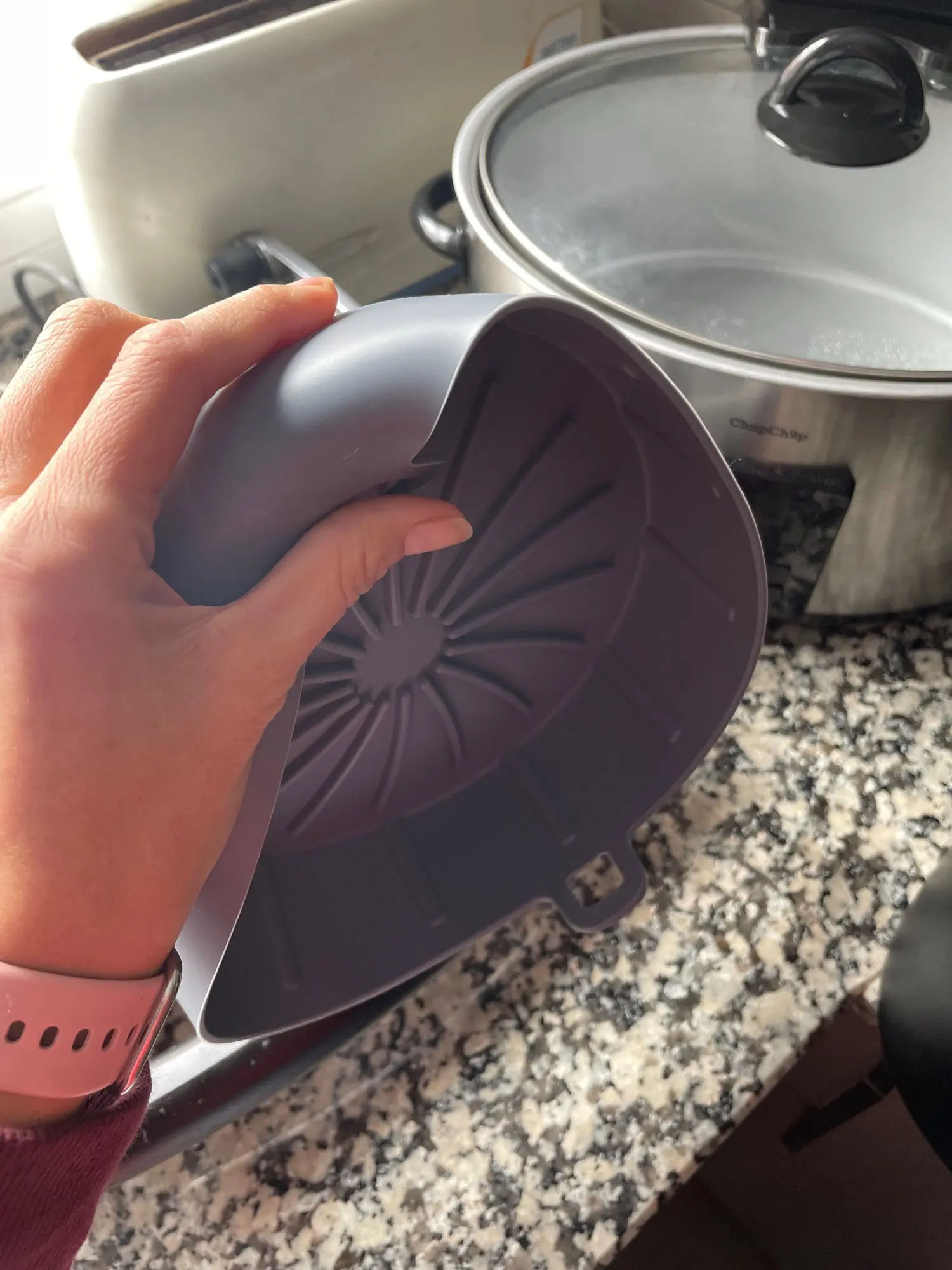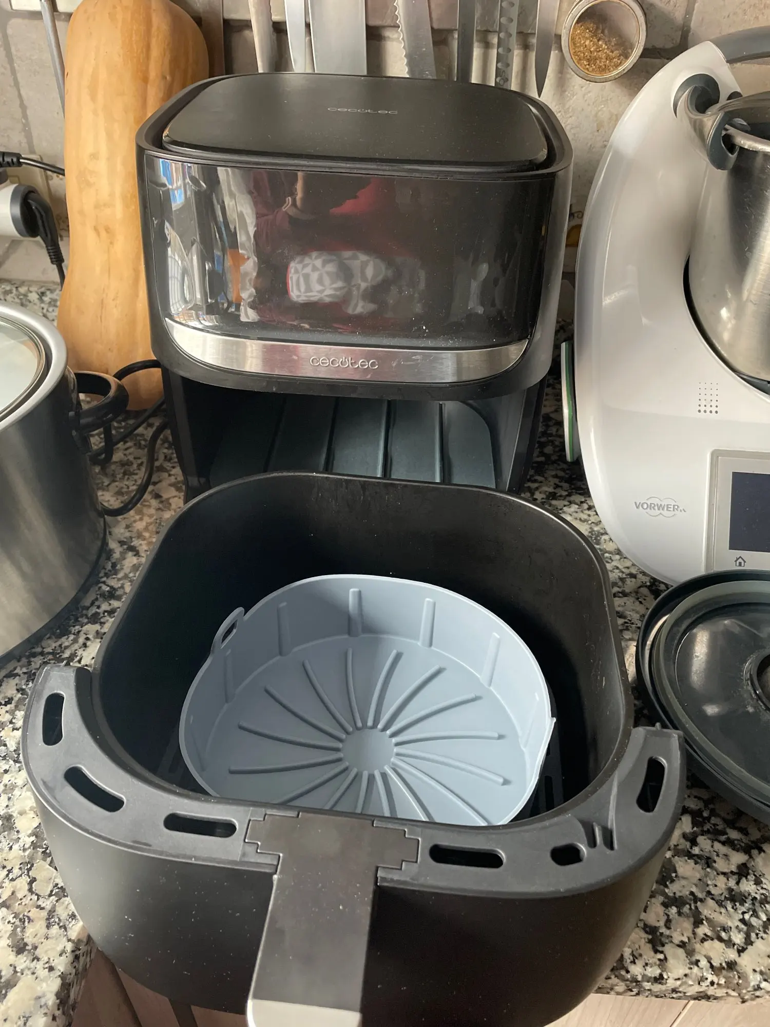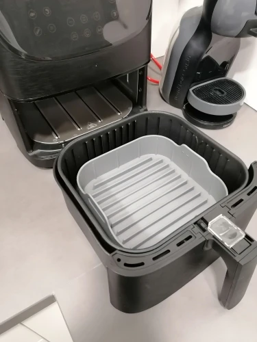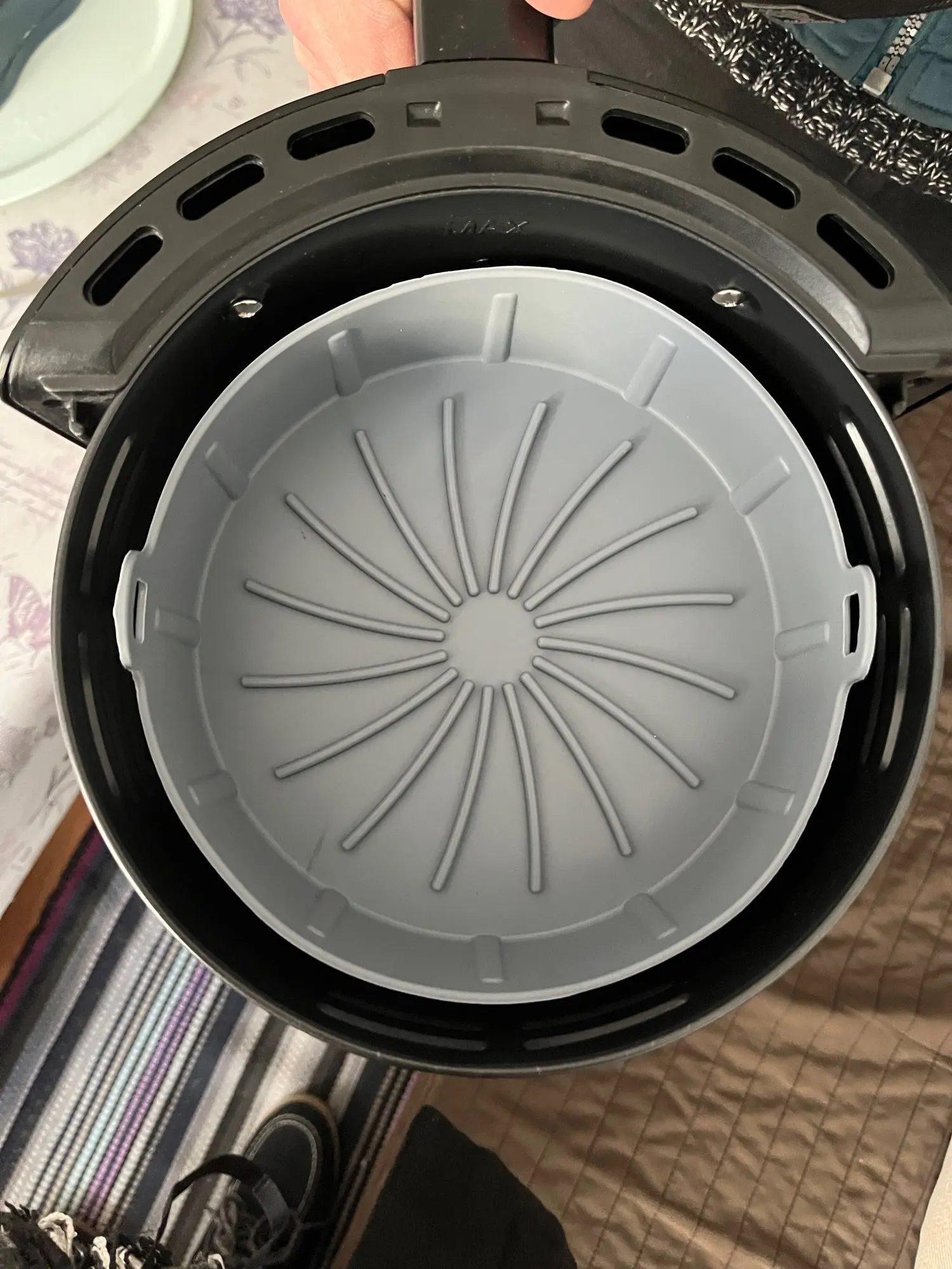 Как и в описании, он вписывается прямо в мой воздушный фриер. Я еще не использовал его, но выглядит хорошо