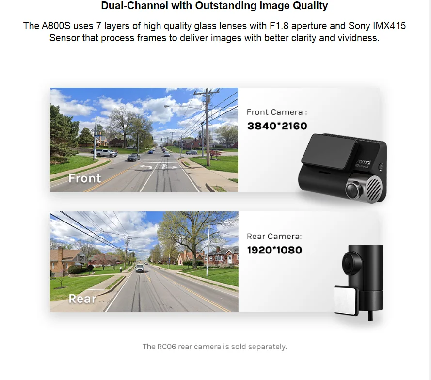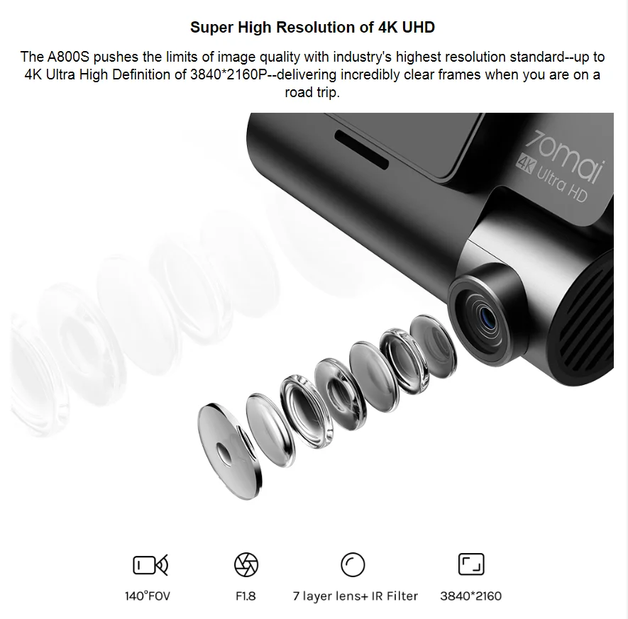 70mai A800S 4K видеорегистратор 3840X216 0 разрешение 4K видеорегис...