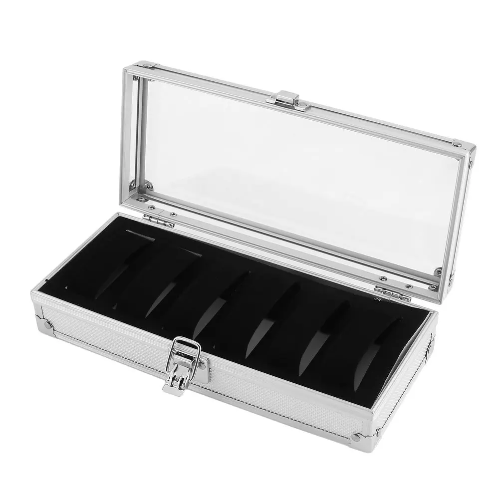 6 ячеек со вставками, коробка для хранения ювелирных изделий, часов, демонстрации, чехол, алюминиевая коробка для часов, органайзер для украшений