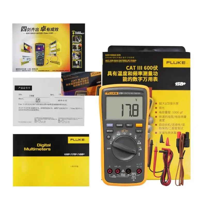 Цифровой мультиметр FLUKE 17B +, измеритель переменногопостоянного тока, емкости, температуры, Ом, автоматическоеручное измерение диапазона