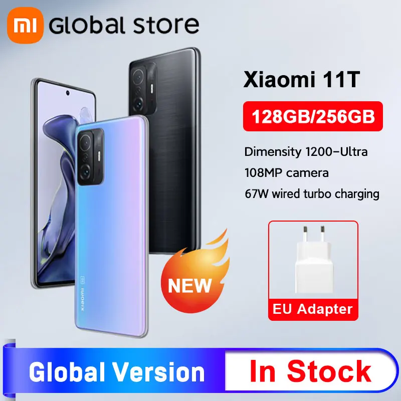 Глобальная версия смартфона Xiaomi 11T 128 ГБ256 ГБ MediaTek Dimensity 1200-Ultra Octa Core 108MP Camera 5000 мАч NFC 67W зарядка