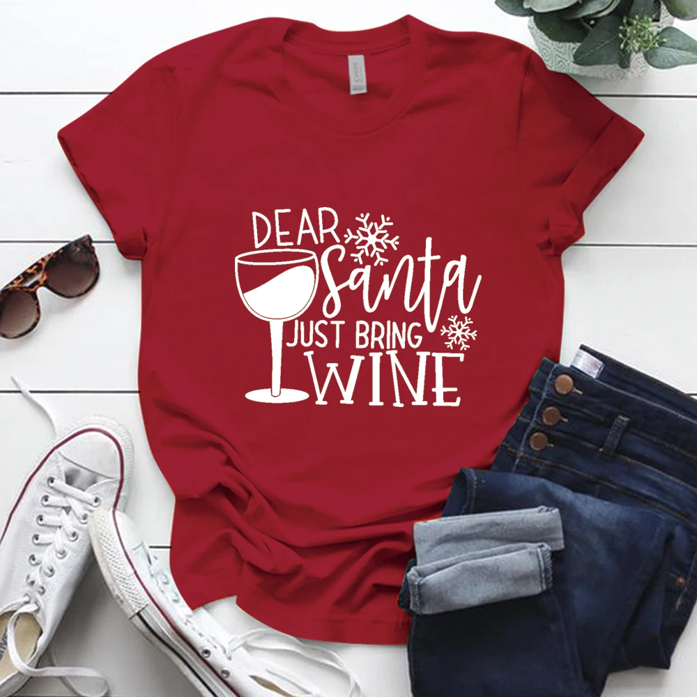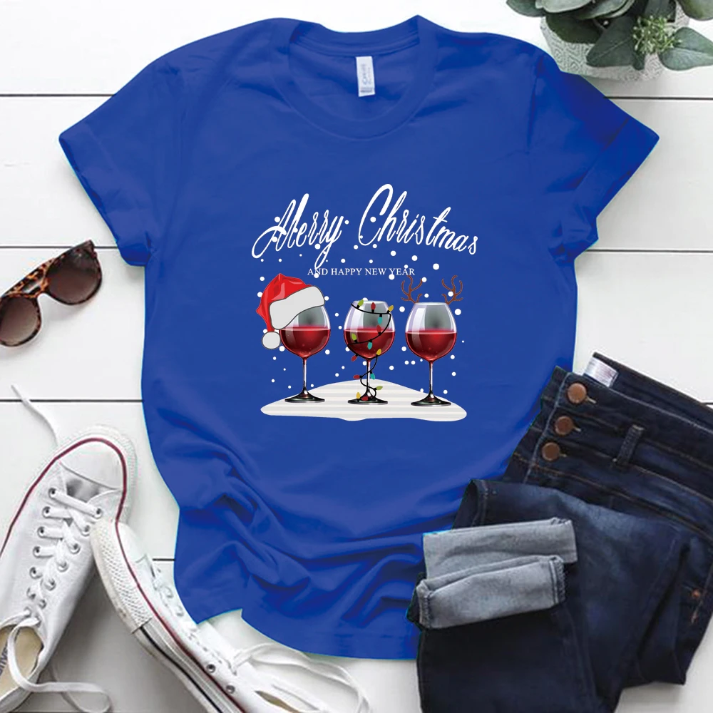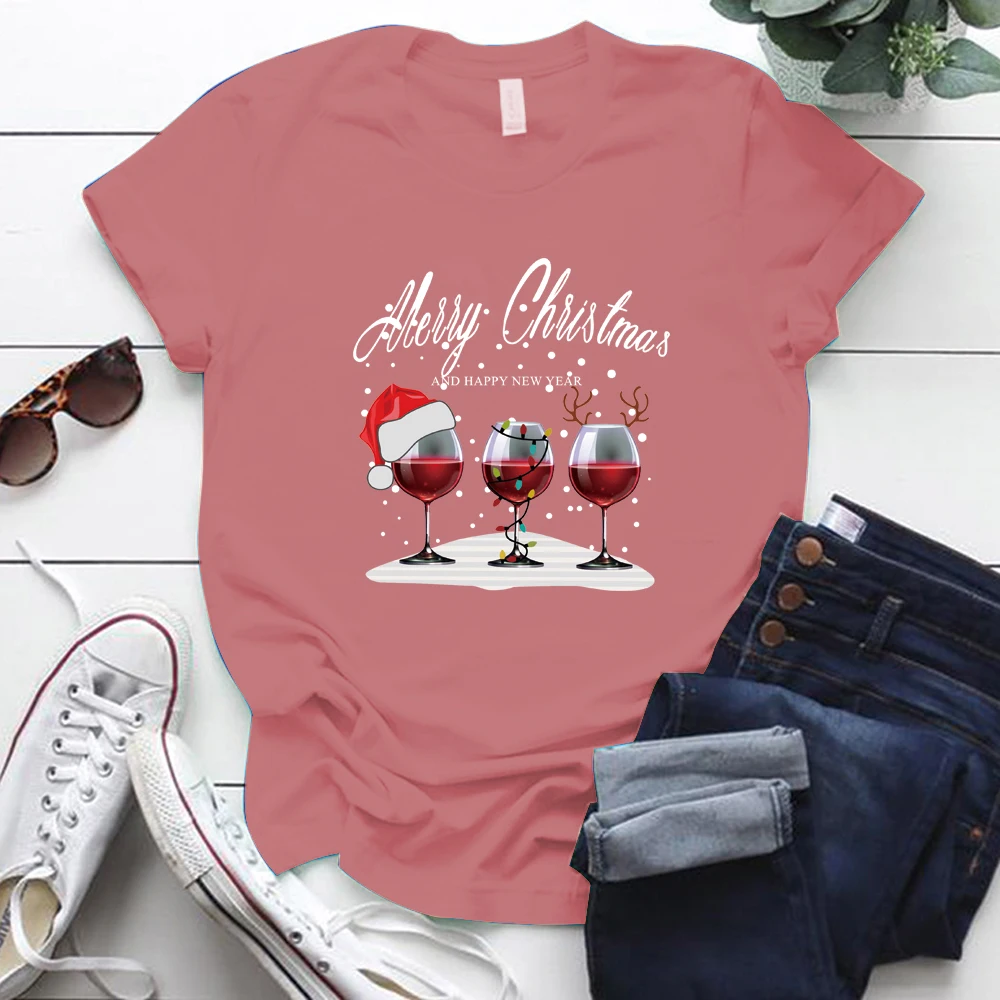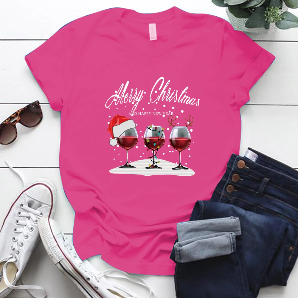Рождественская Эстетическая Футболка с принтом вина, женская футболка большого размера с круглым вырезом, повседневный Рождественский подарок для дам, топы с вырезом