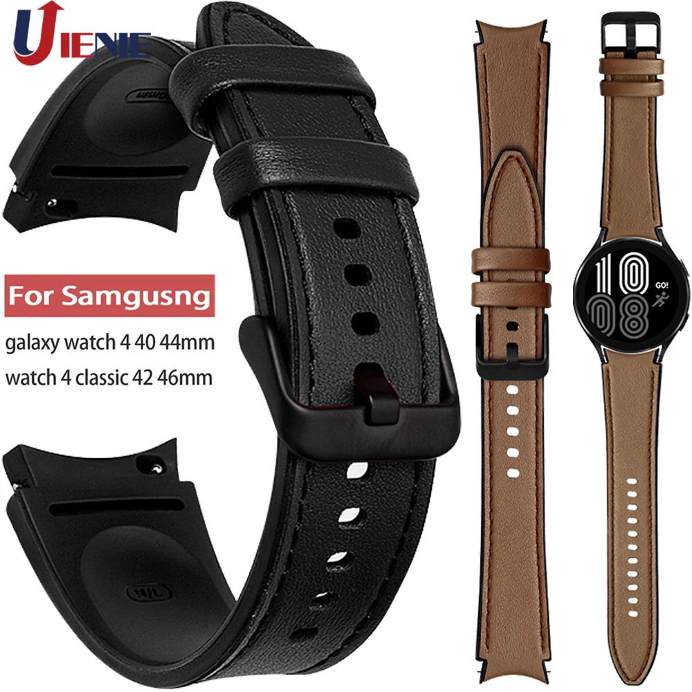 Ремешок 20 мм для Samsung Watch 4 44 мм 40 мм, силиконовый и кожаный браслет для Galaxy Watch 4 Classic 46 мм 42 мм