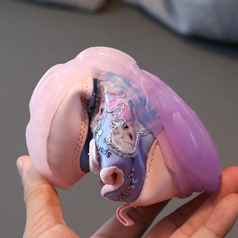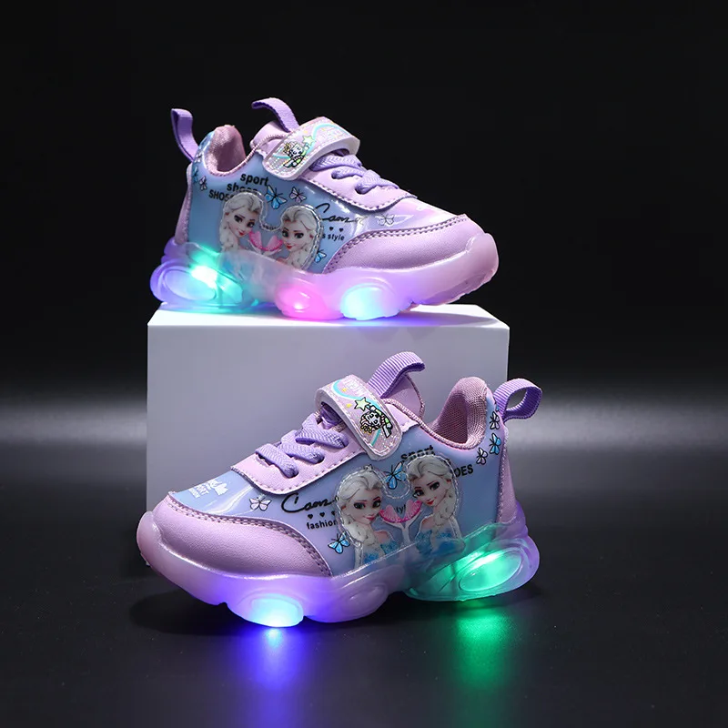 Осенние детские светящиеся кроссовки Disney с мультяшным принтом Холодное сердце, светодиодная обувь для девочек и мальчиков с подсветкой, повседневная детская светящаяся обувь, детская обувь