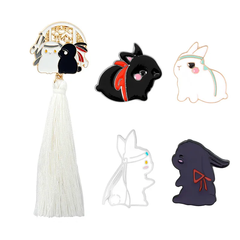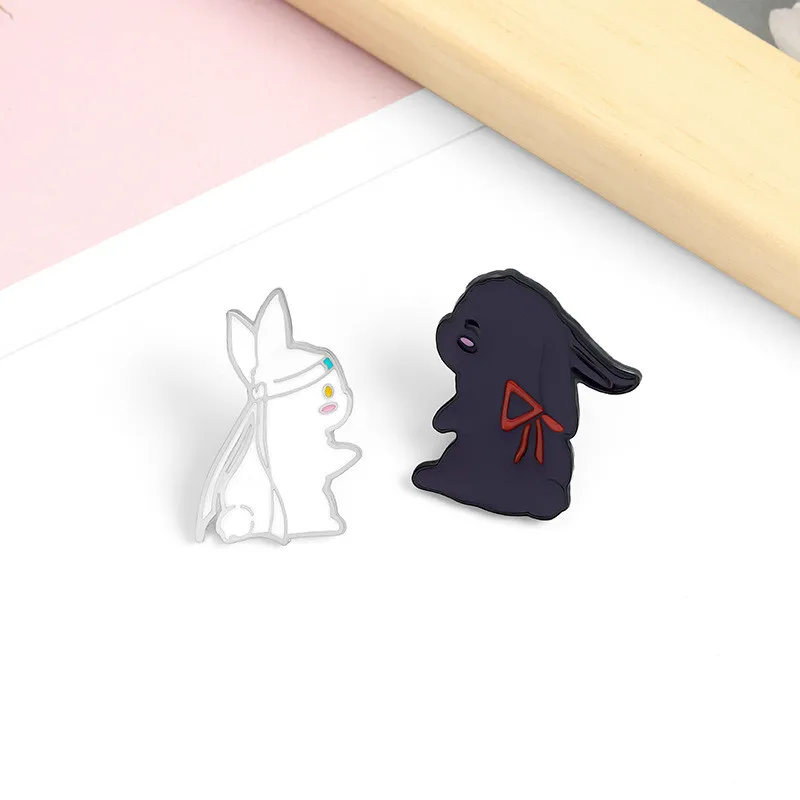 Креативные эмалевые Броши Wei Wuxian белые черные кролики кисточка заколки на лацкан сумка тканевая Кнопка Badeg WangXian Поклонники подарки ювелирные изделия