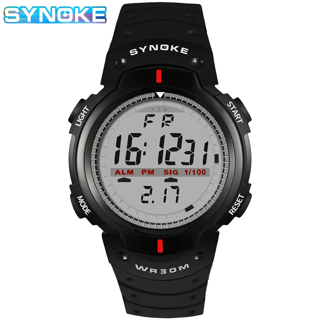 Часы наручные SYNOKE мужские с силиконовым ремешком, спортивные водонепроницаемые цифровые со светодиодным календарем