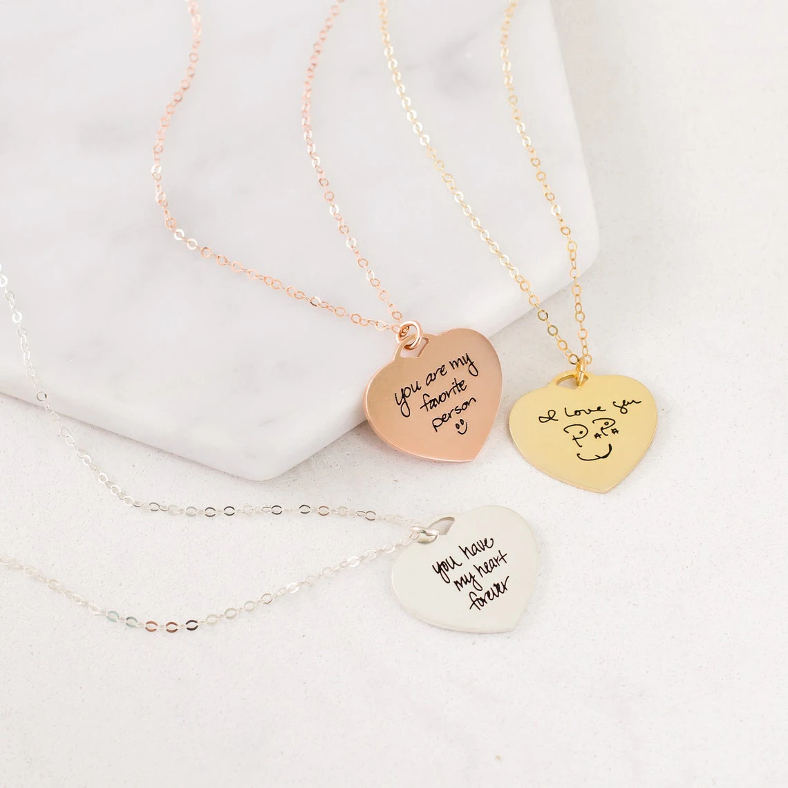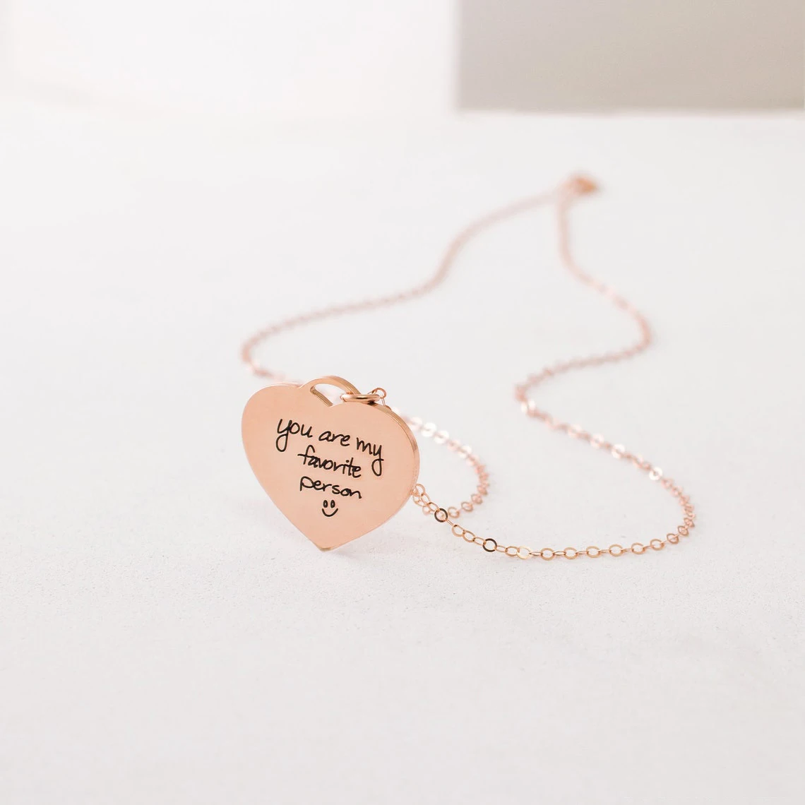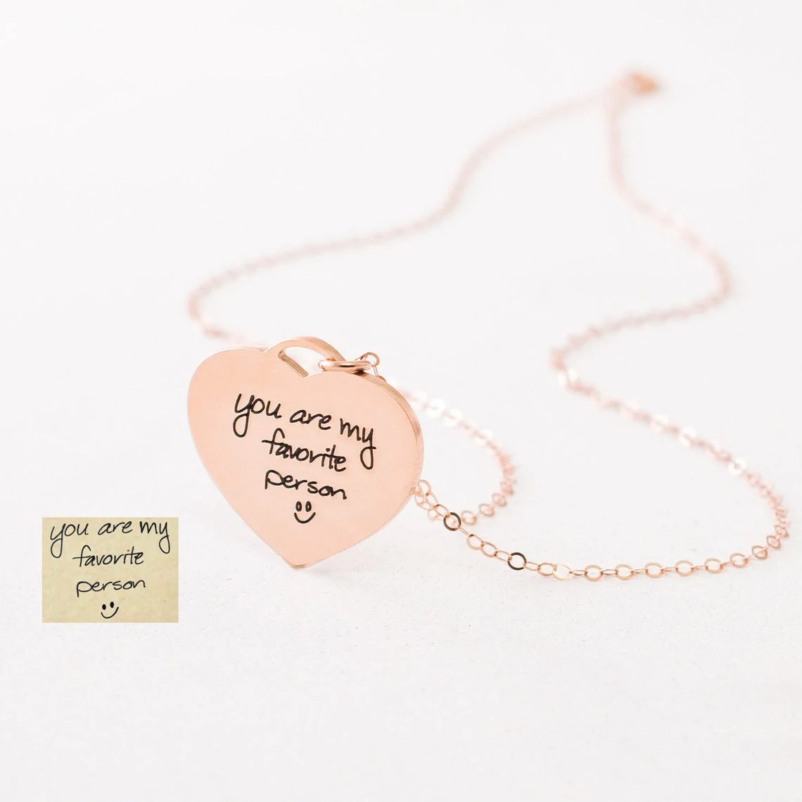 На заказ фактический почерк сердце кулон ожерелье Персонализация включена текст выгравированы ювелирные изделия День матери подарок для нее
