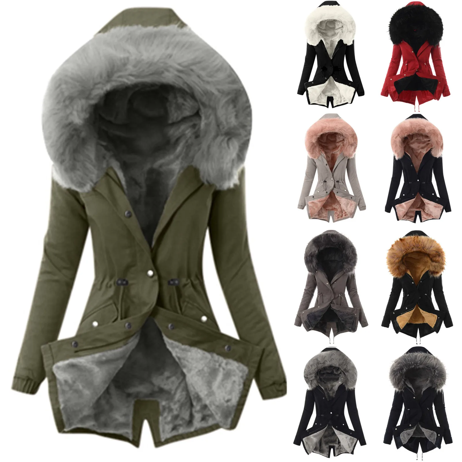 Новое модное женское пальто с капюшоном из искусственного меха, Женское пальто с подкладкой из искусственного меха, женские зимние теплые толстые длинные куртки, пальто с капюшоном