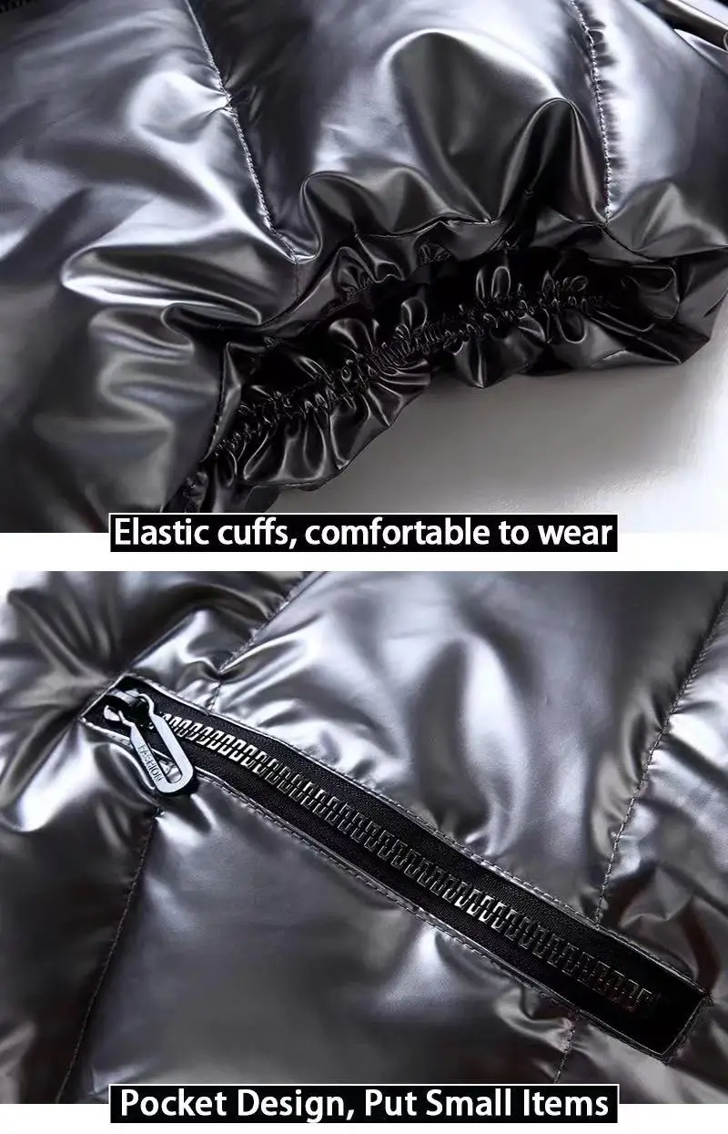 Блестящий пуховик с хлопковой подкладкой для мужчин и женщин, теплы...