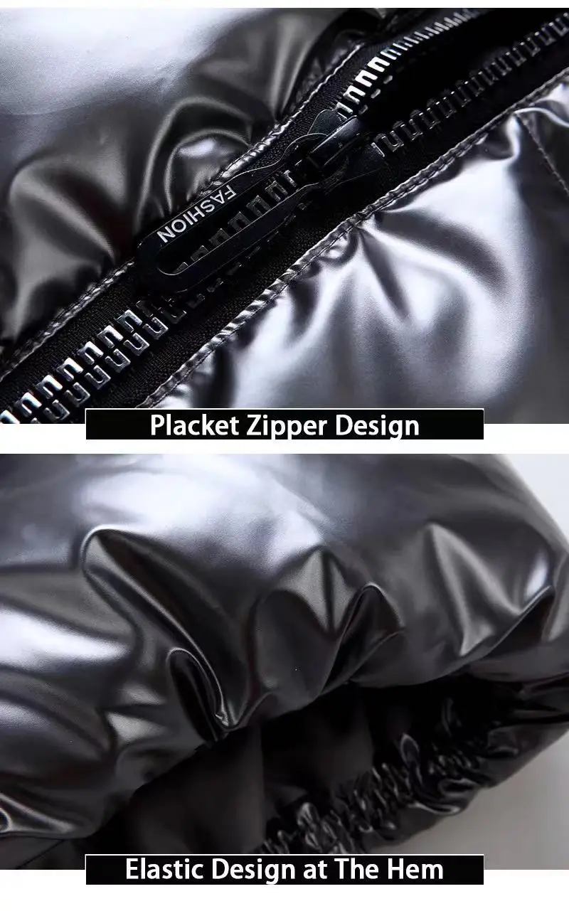 2021 зимний теплый жилет, куртка, глянцевый на молнии с капюшоном, ...