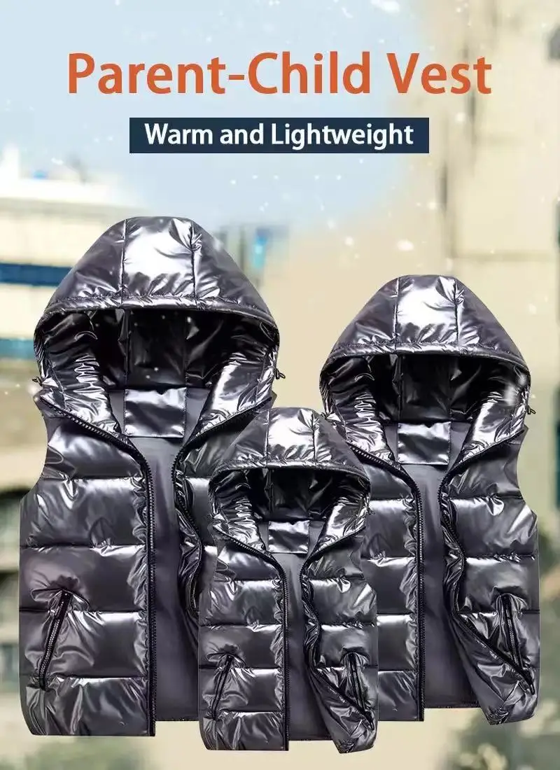 Жилет мужскойженскийдетский, зимний глянцевый хлопковый жилет с кап...