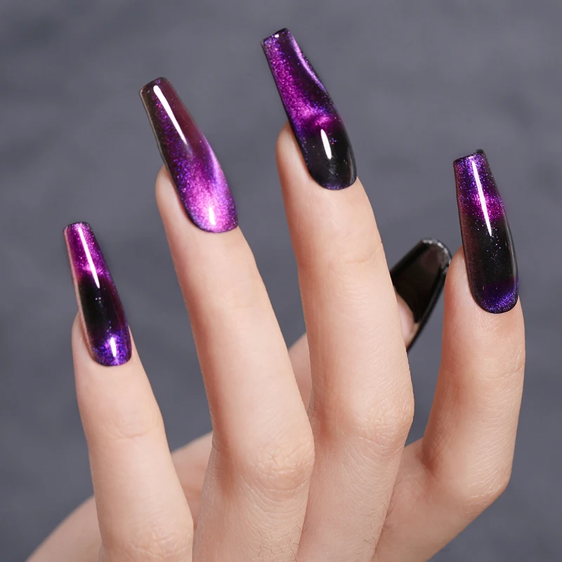 Шаг 5. Нанесите кошачий УФ Магнитный Гель-лак, не вылечивайте и не кладите магнит на ногти в течение 10-15 секунд, чтобы получить кошачий меганетический эффект, А затем немедленно вылечите УФ-лампой в течение 2 минут или вылечите светодиодный светильник в течение 60 секунд.